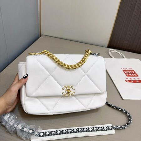 $289.00$229.00Replica 1:1 – Chanel 19 Large Stitch Crossbody Bag White 24cm The Chanel 19 Large Stitch Crossbody Bag in White is a sophisticated blend of elegance and modernity. Featuring oversized stitching on soft, luxurious leather, it is adorned with the iconic CC logo and a versatile chain strap. Perfect for…