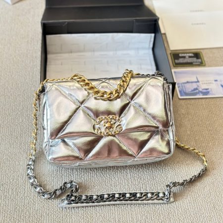 $289.00$245.65Replica 1:1 – Chanel 19 Flap Bag Metallic Silver 26cm Chanel 19 Flap Bag Metallic Silver 26cm – A perfect blend of classic elegance and modern sophistication. Crafted from high-quality metallic silver leather, this bag exudes luxury and makes a bold statement. The signature diamond quilting, interlocking CC logo, and…