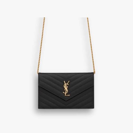 Replica 1:1 – Saint Laurent Cassandre Envelope Chain Wallet Black 20cm The Saint Laurent Cassandre Envelope Chain Wallet in Black (20 cm) showcases elegant chevron quilting and the iconic Cassandre logo. This compact accessory features a zippered compartment and card slots for practicality. Versatile in design, it can be carried…