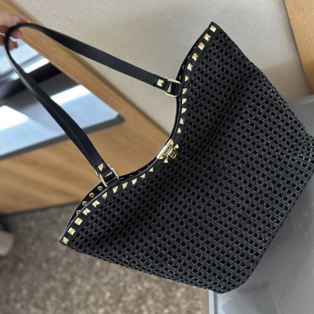 $279.00Replica 1:1 – Valentino Garavani Rockstud Raffia Tote Bag Black 31cm Suddenly lugging your bag everywhere doesn’t look so bad, especially when you have something as chic as this Rockstud tote bag from Valentino Garavani. This tote bag is designed with woven synthetic raffia, rockstud detailing, lock clasp fastening, protective…
