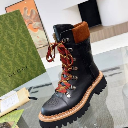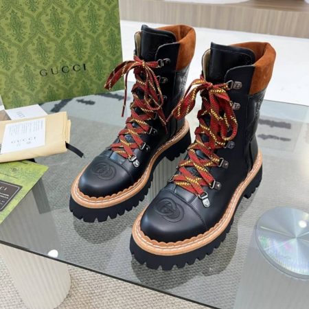 $279.00Replica 1:1 – Gucci GG Quilted Ankle Boots Black Command attention with this bold combat boot that blends rugged edge with refined craftsmanship. Designed with a thick treaded sole for confident steps, it features vibrant red-and-yellow hiking-style laces that add a pop of color and personality. The sleek black upper…