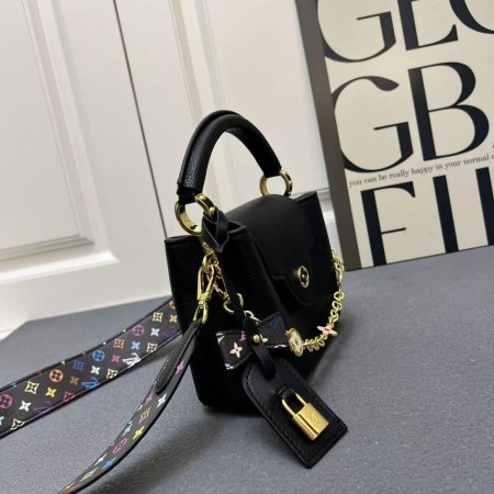 Replica 1:1 – Louis Vuitton Mini Capucines Leather White 20cm The luxurious Capucines Mini is crafted from white Taurillon leather, accented with gold-tone details on the handle loop and the iconic LV logo. This mini version of the classic Capucines is comfortable to wear on the shoulder or crossbody thanks…