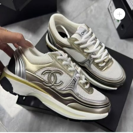 $369.00Replica 1:1 – Chanel 23C Sneaker White Gold Silver CC Logo They feature a chunky silhouette and a mixed-material design, with white mesh and what appears to be metallic leather in gold and silver tones. The iconic interlocking “CC” logo is prominently displayed on the side of each shoe. Product…