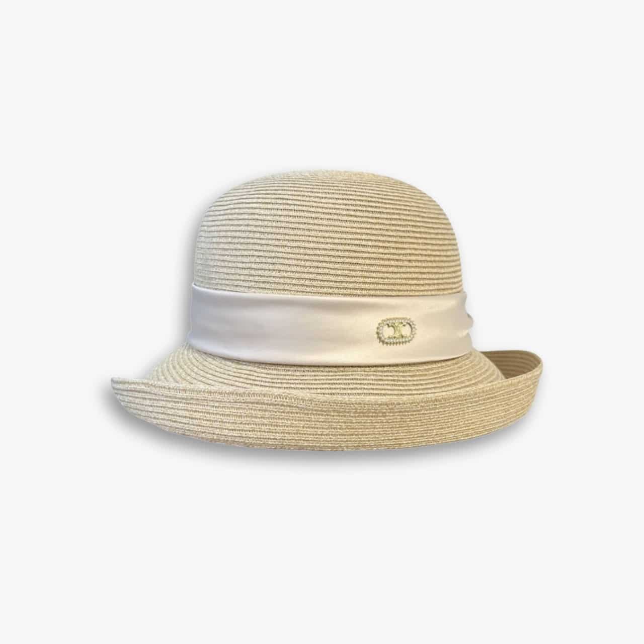 Replica 1:1 – Celine Raffia Curled Brim Hat With Satin White