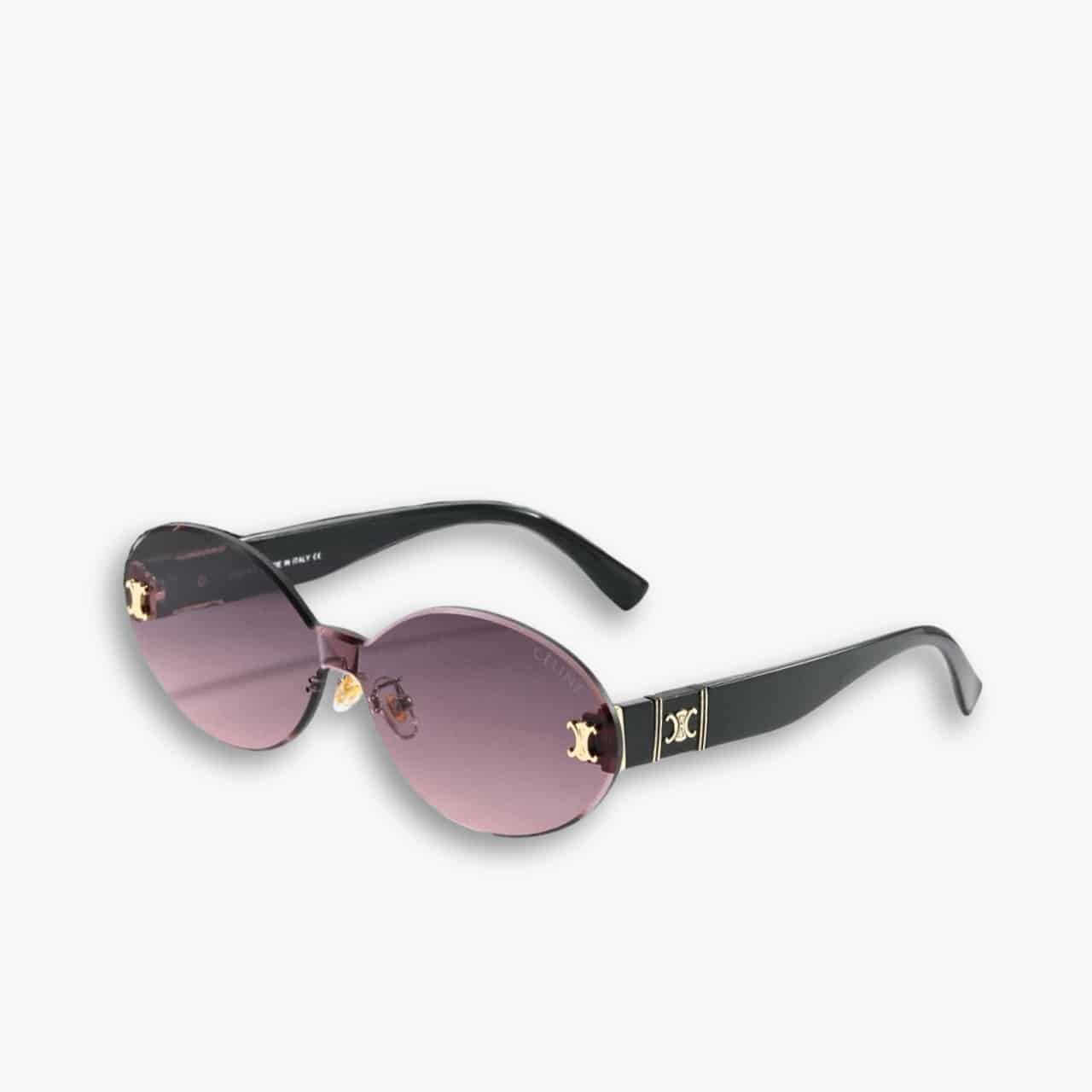 The Celine Tortoise Luxe Oval Rimless Sunglasses Purple Rose bring a refined elegance with their rimless oval lenses in a soft purple rose tint. The gold-tone Triomphe logo adorns the temples, adding a signature touch of luxury. With sleek black acetate arms and adjustable nose pads, these sunglasses offer a comfortable yet statement-making fit, perfect for a sophisticated and modern look.