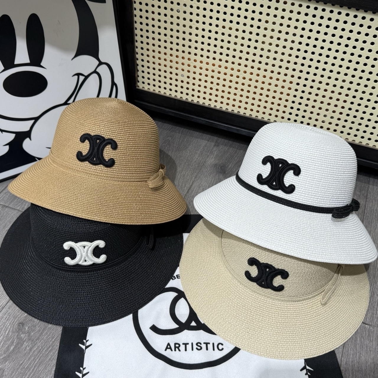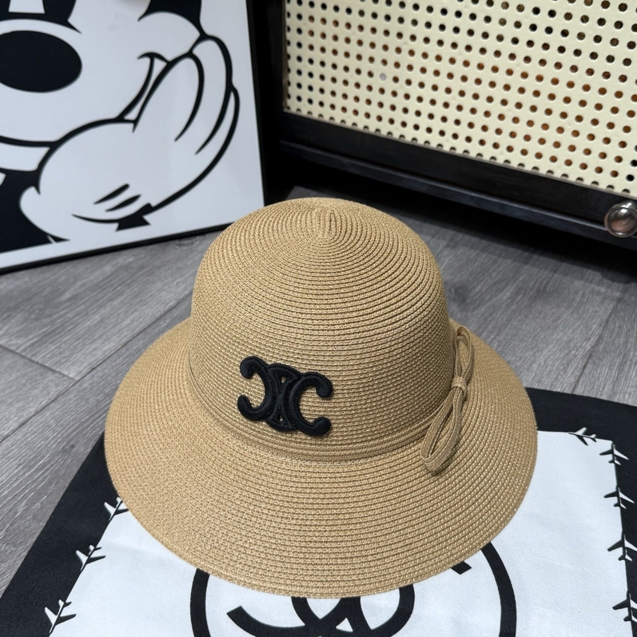 Replica 1:1 – Celine Triomphe Raffia Bucket Hat With Bow Natural