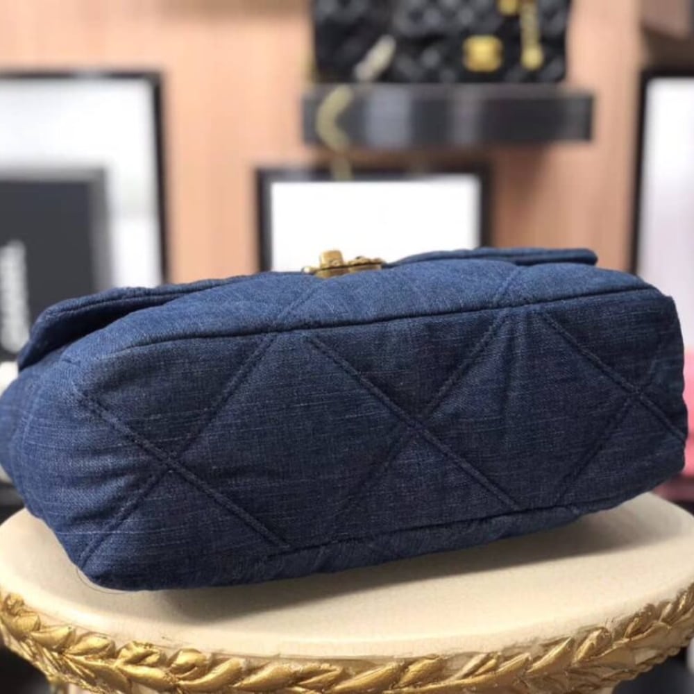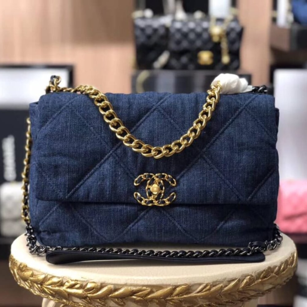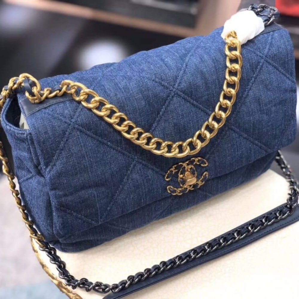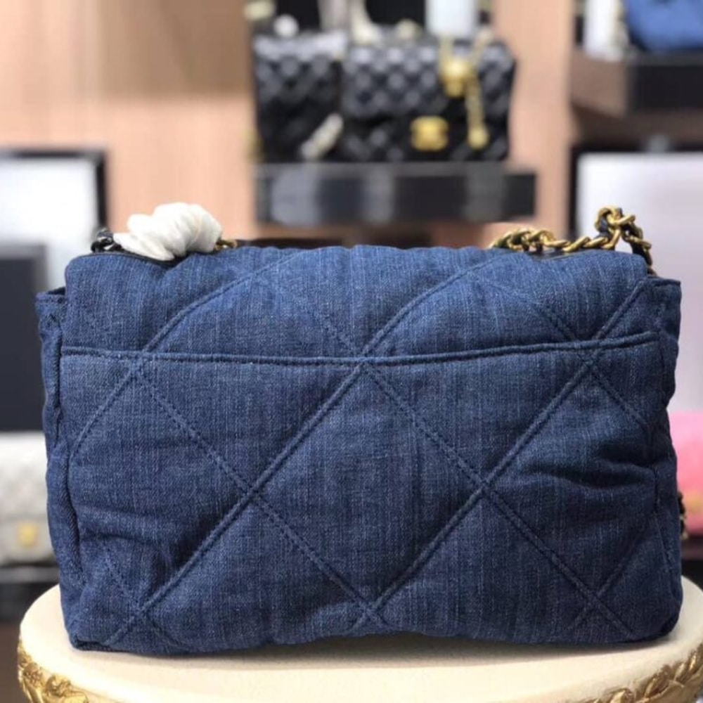 The CHANEL 19 Flap Bag in denim is a versatile choice for daily use, combining practicality with effortless style. Its vibrant blue denim material exudes a youthful and dynamic energy, making it a standout piece for any casual or chic outfit.