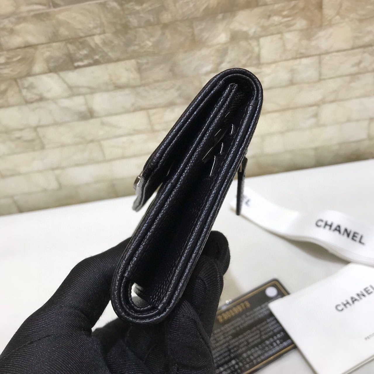 Chanel brings you a chic clutch wallet with the look of a classic flap bag. This clutch is accented with quilted stitching and a CC snap for closure.