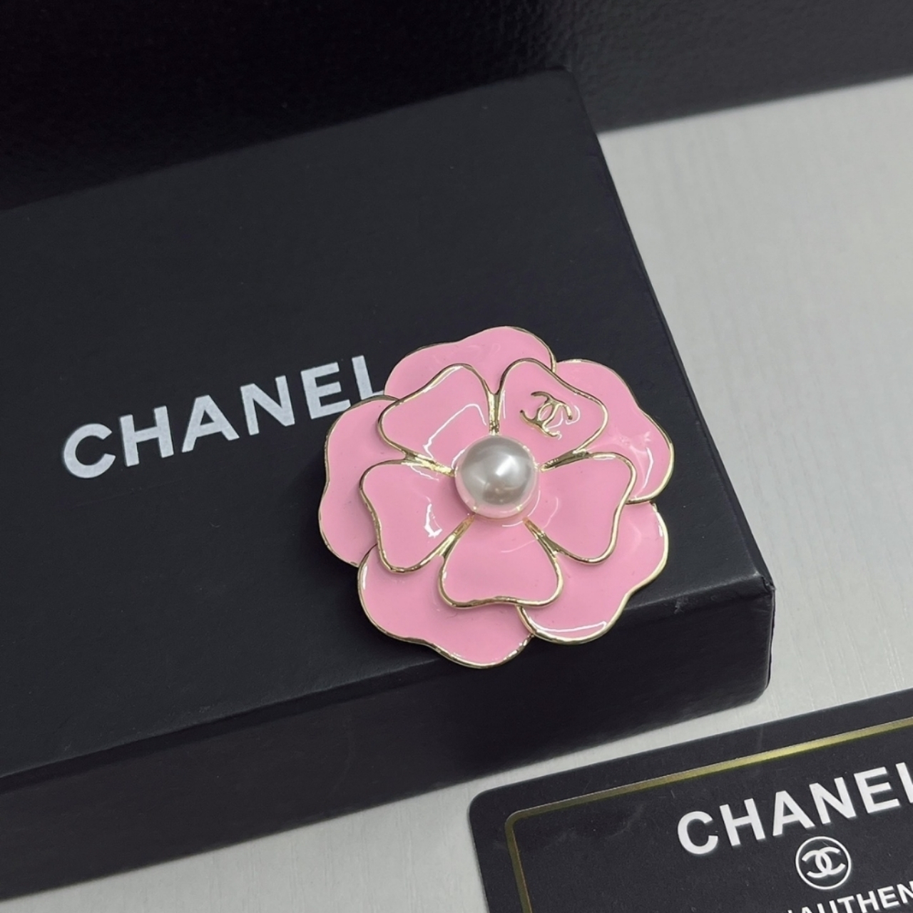 Replica 1:1 – Chanel Brooch Metal And Resin Gold With Pink Pearly White