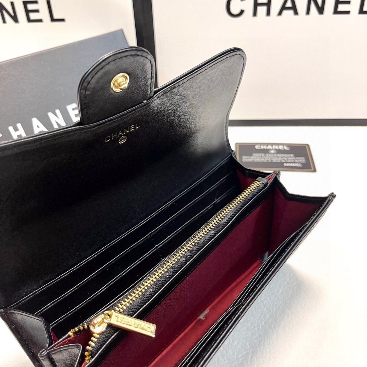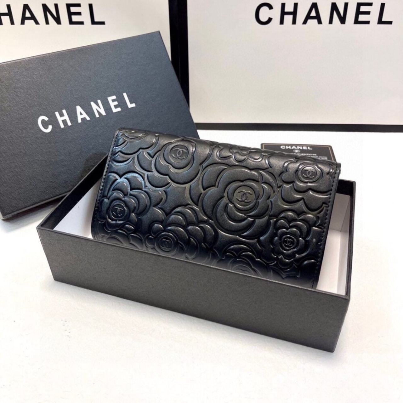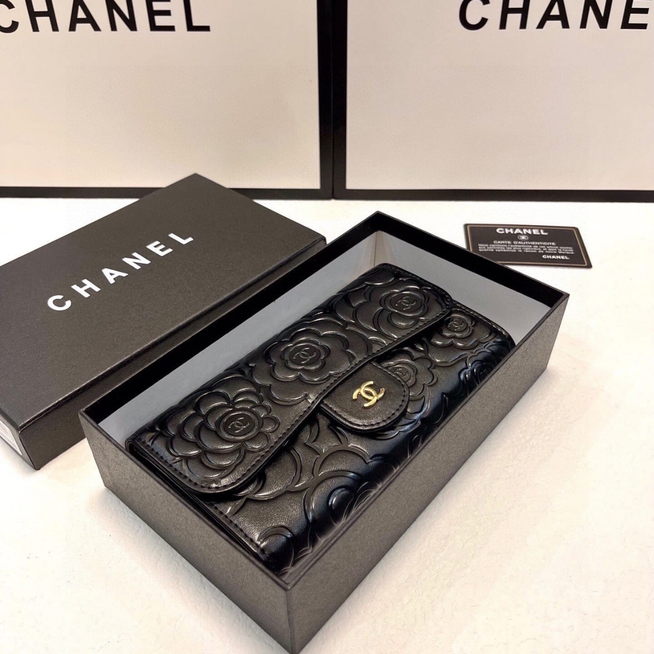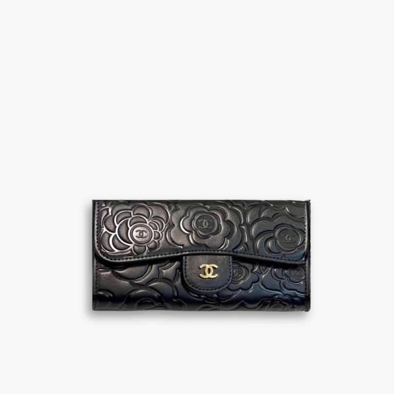 Replica 1:1 – Chanel Camellia Embossed Flap Wallet Black 19Cm