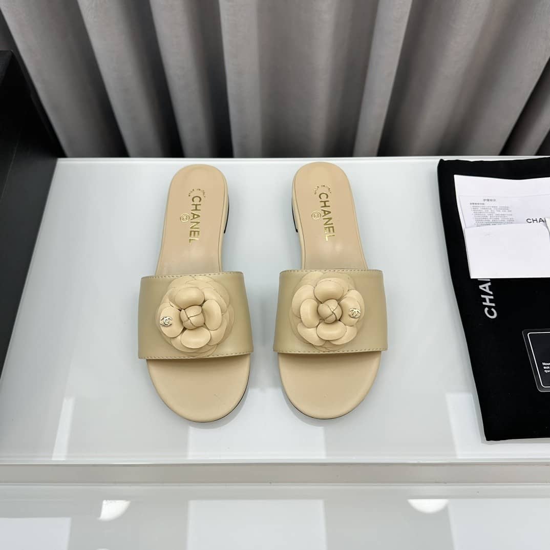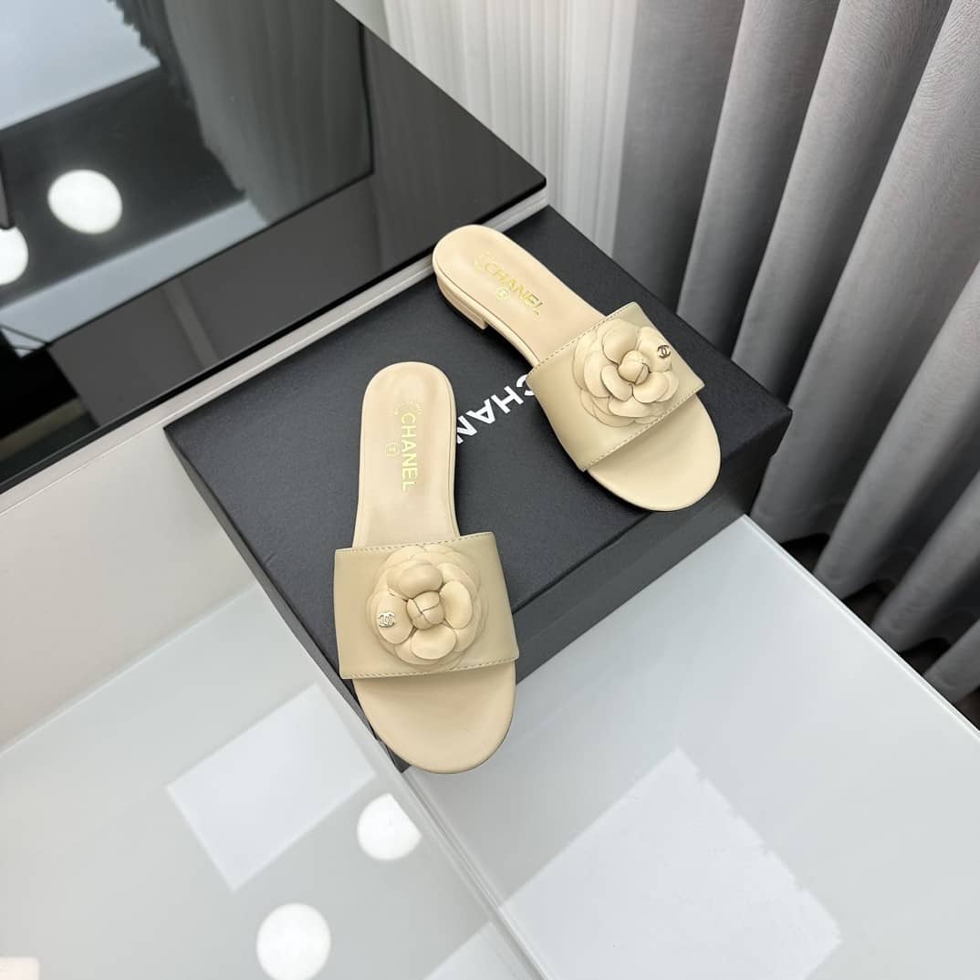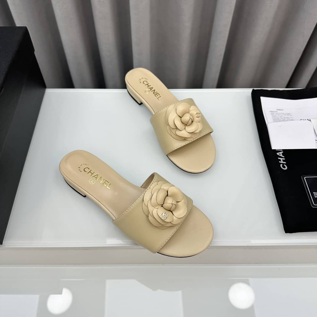 Replica 1:1 – Chanel Camellia Slides Beige
