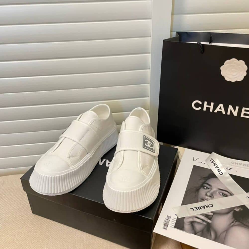 Replica 1:1 – Chanel CC Cap Toe Slipon Sneaker All White
