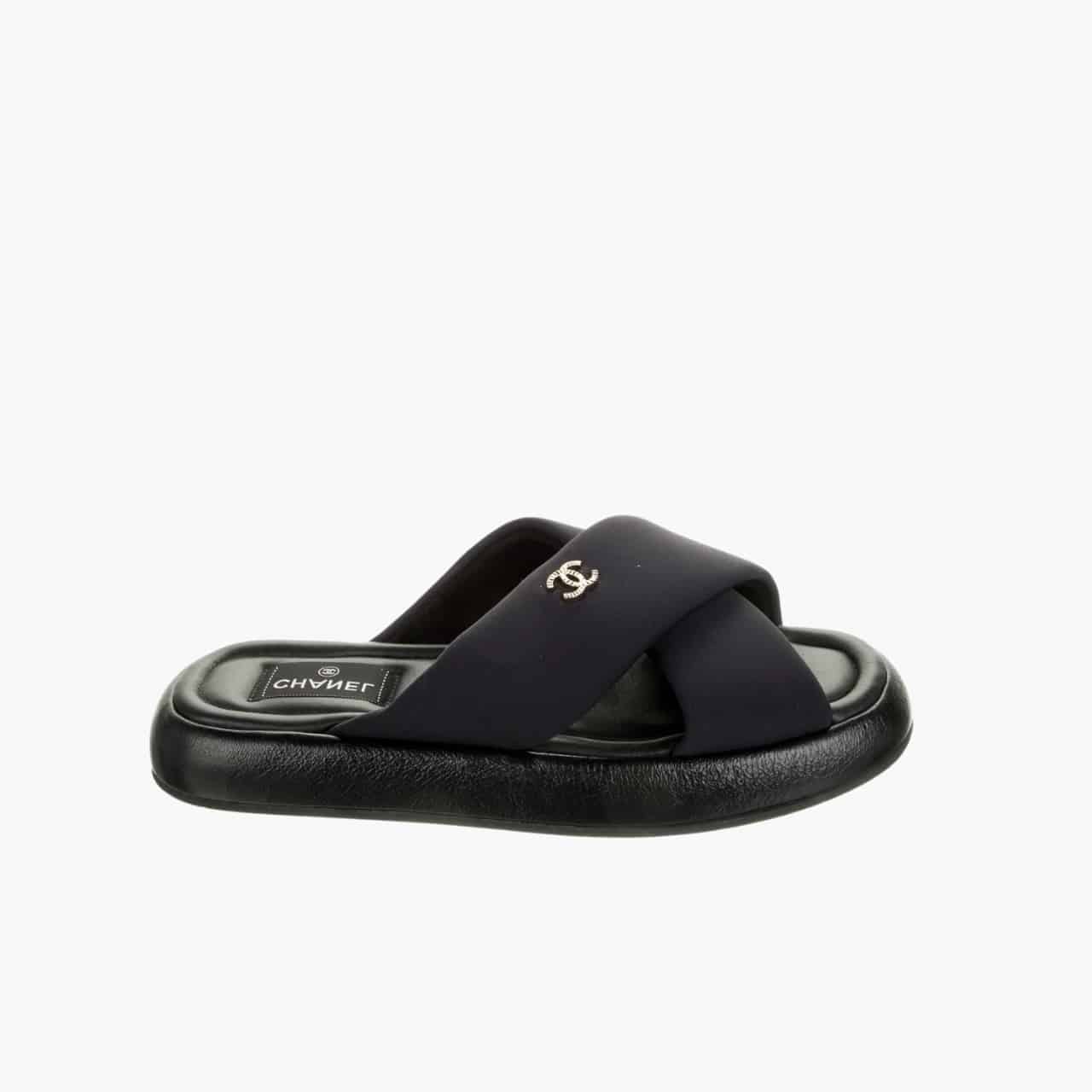 Replica 1:1 – Chanel CC Logo Criss Cross Slides Black