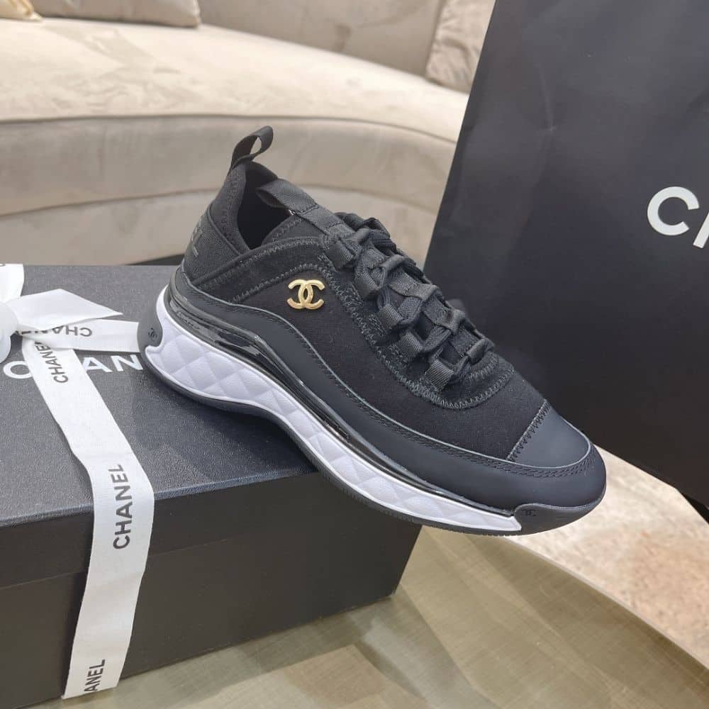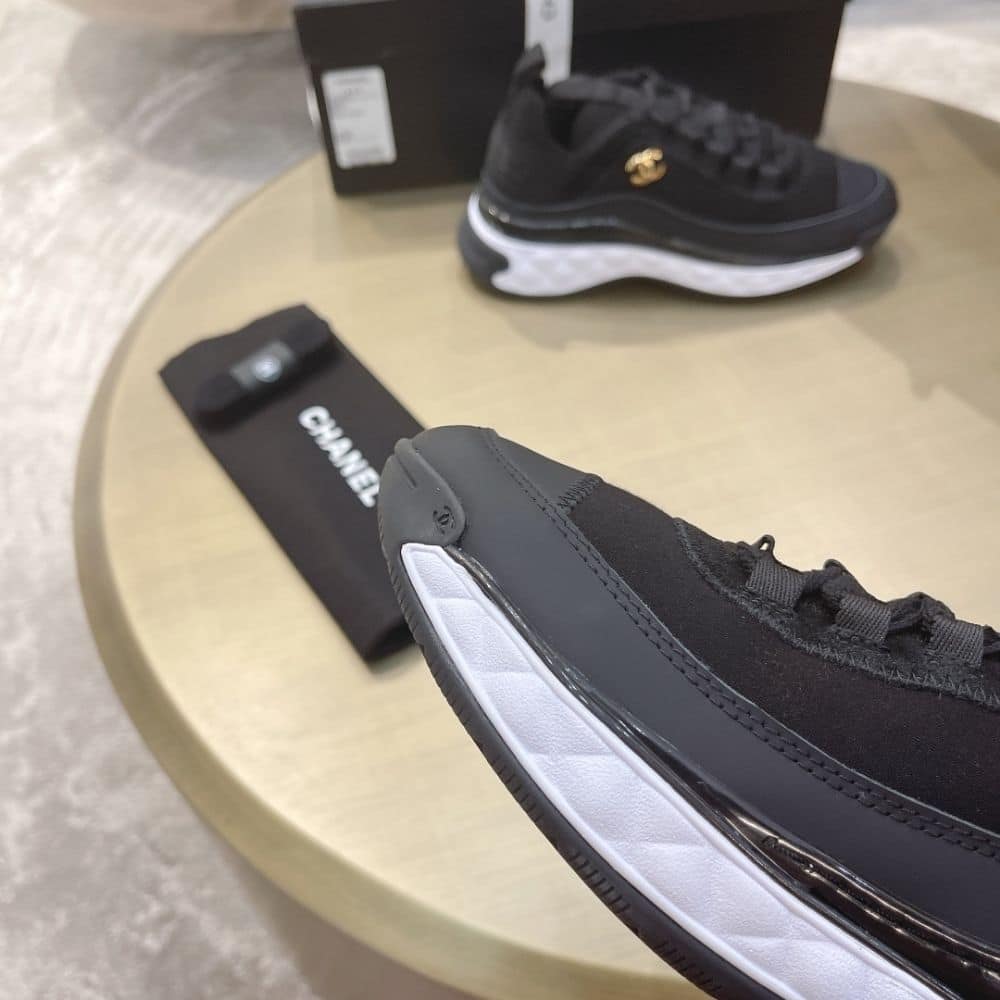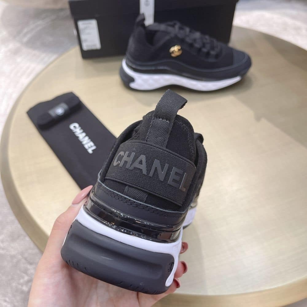 Elevate your footwear game with these Chanel black sneakers. Combining high-end aesthetics and unmatched comfort, these sneakers are a symbol of modern luxury and impeccable taste.