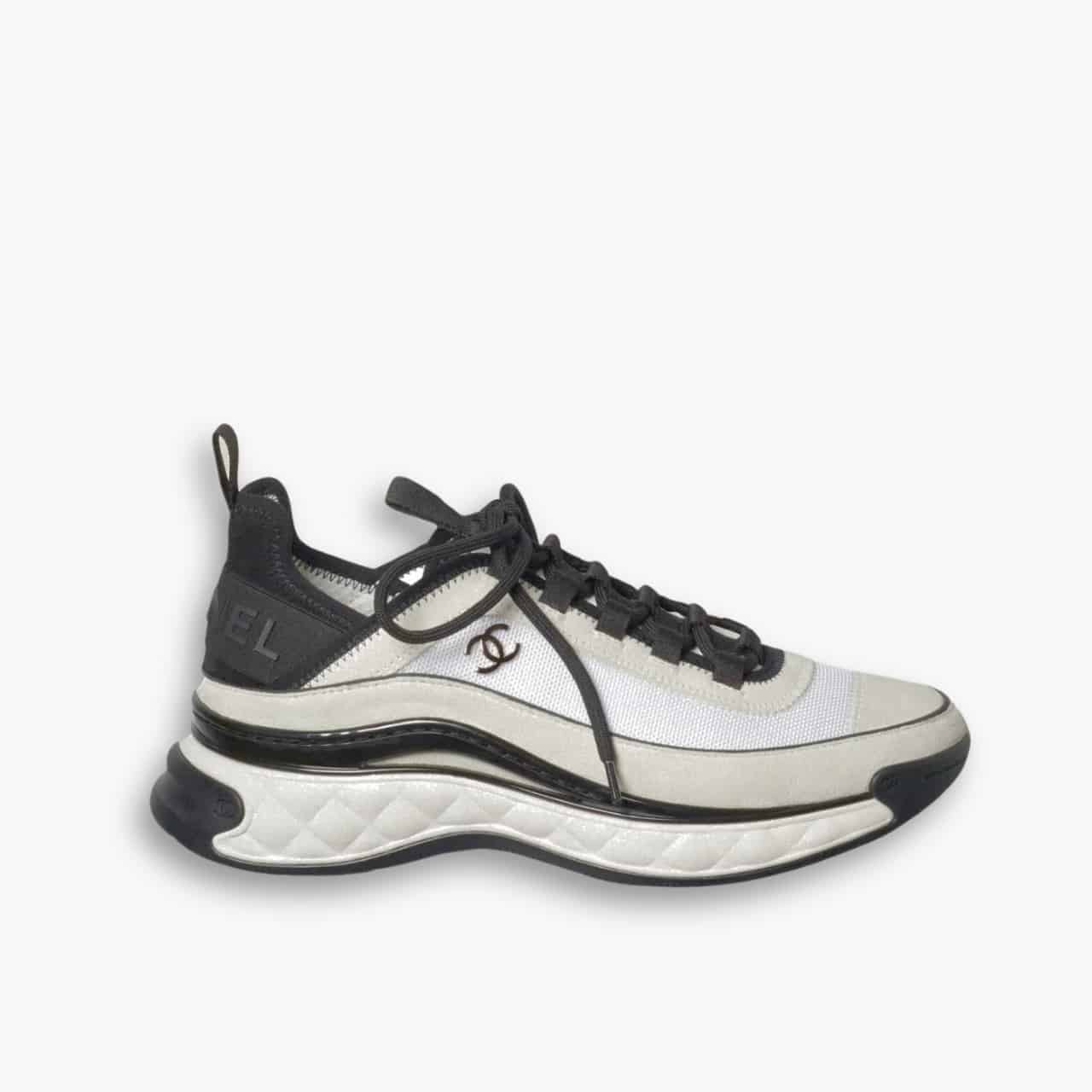 Experience constant style with these CC low-top sneakers from Chanel. Made using neoprene and leather, the sneakers are secured with laces, highlighted by signature elements, and mounted on well-constructed rubber soles.