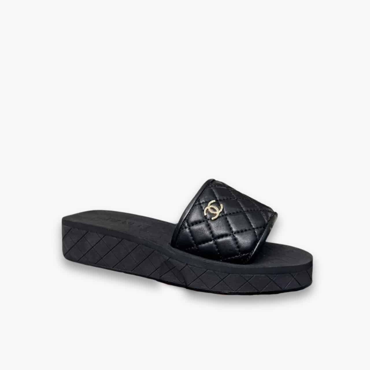 Replica 1:1 – Chanel CC Quilted Platform Slides Black