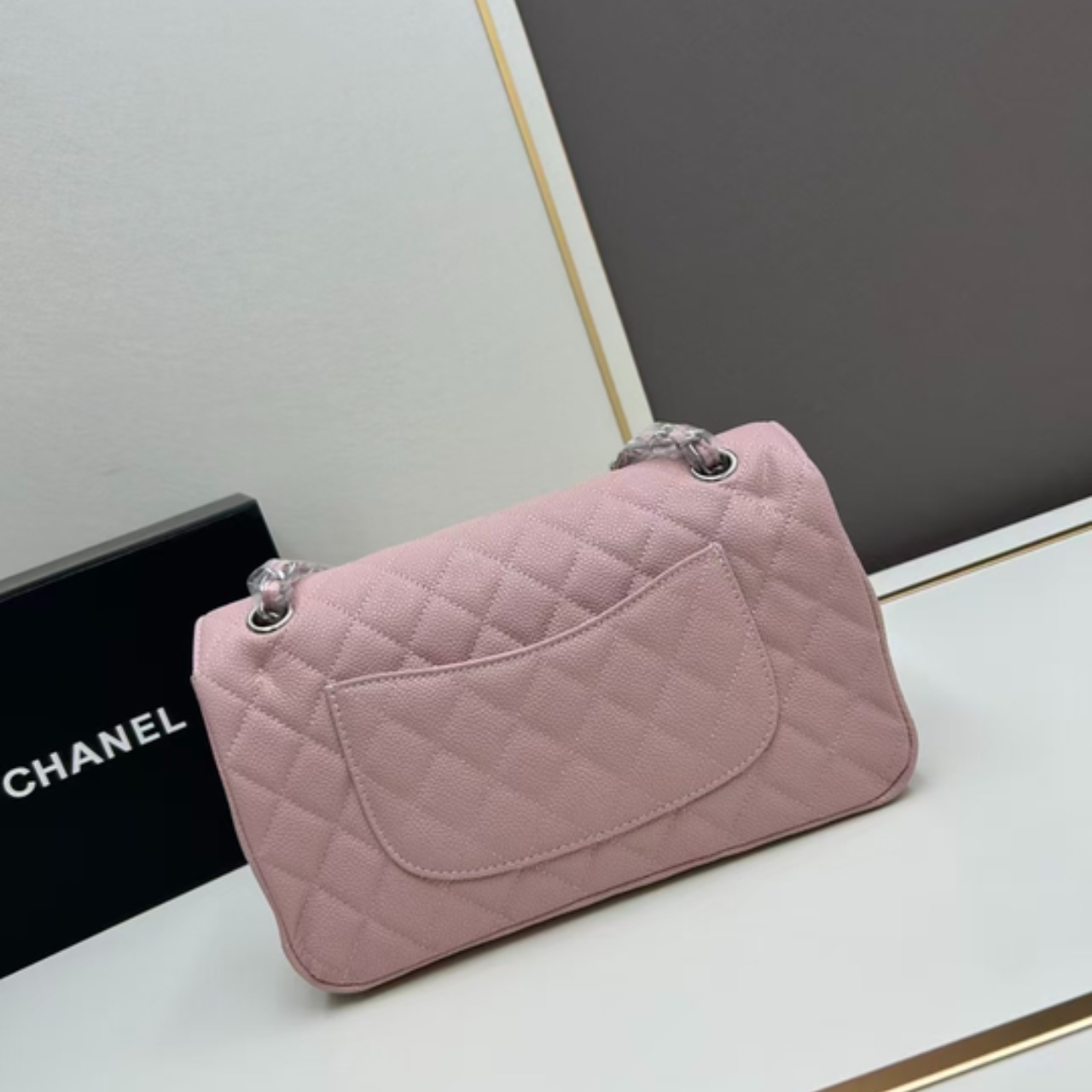 It features Chanel’s signature diamond quilting, CC turn-lock closure, and chain strap, elegant look while providing extra durability. This design is an iconic representation of Chanel’s heritage, perfect for both day and evening wear.