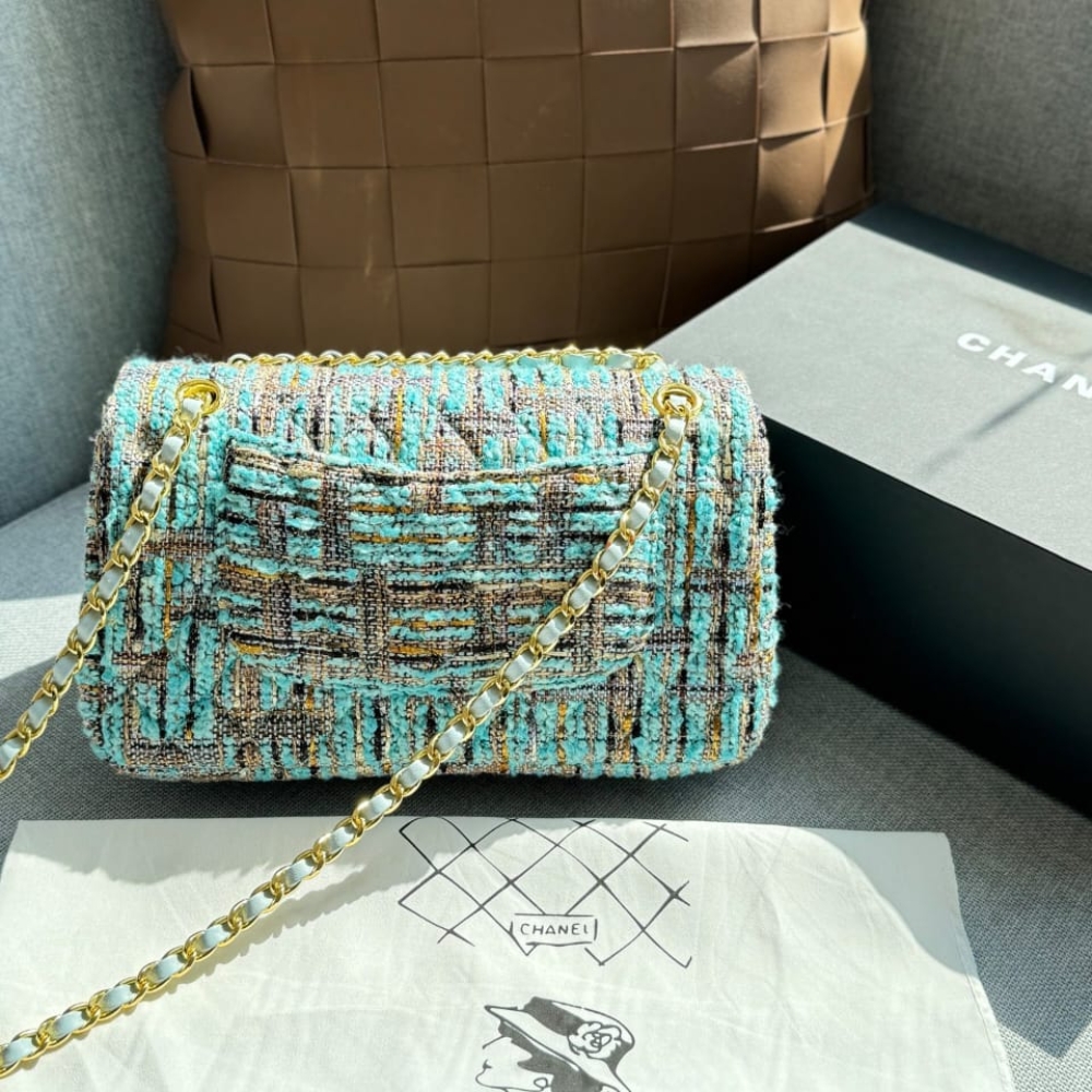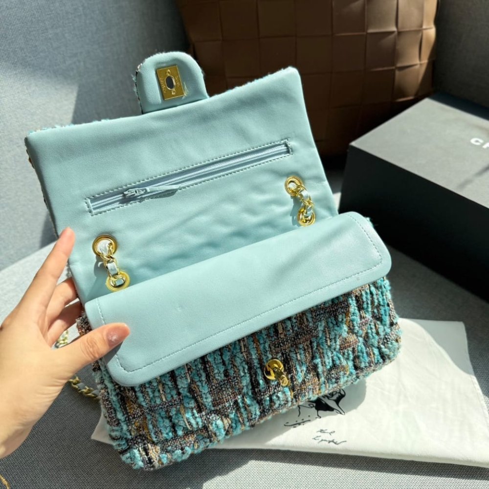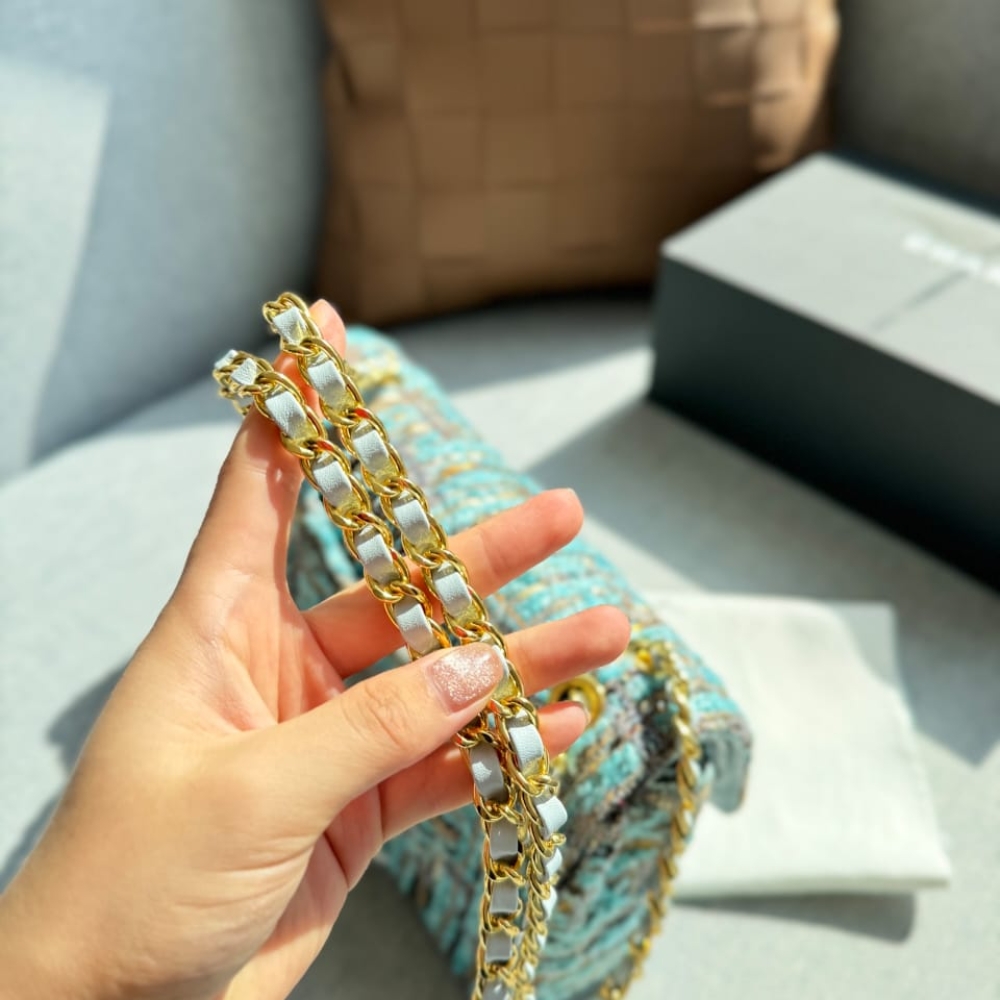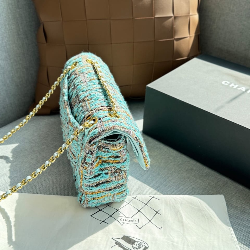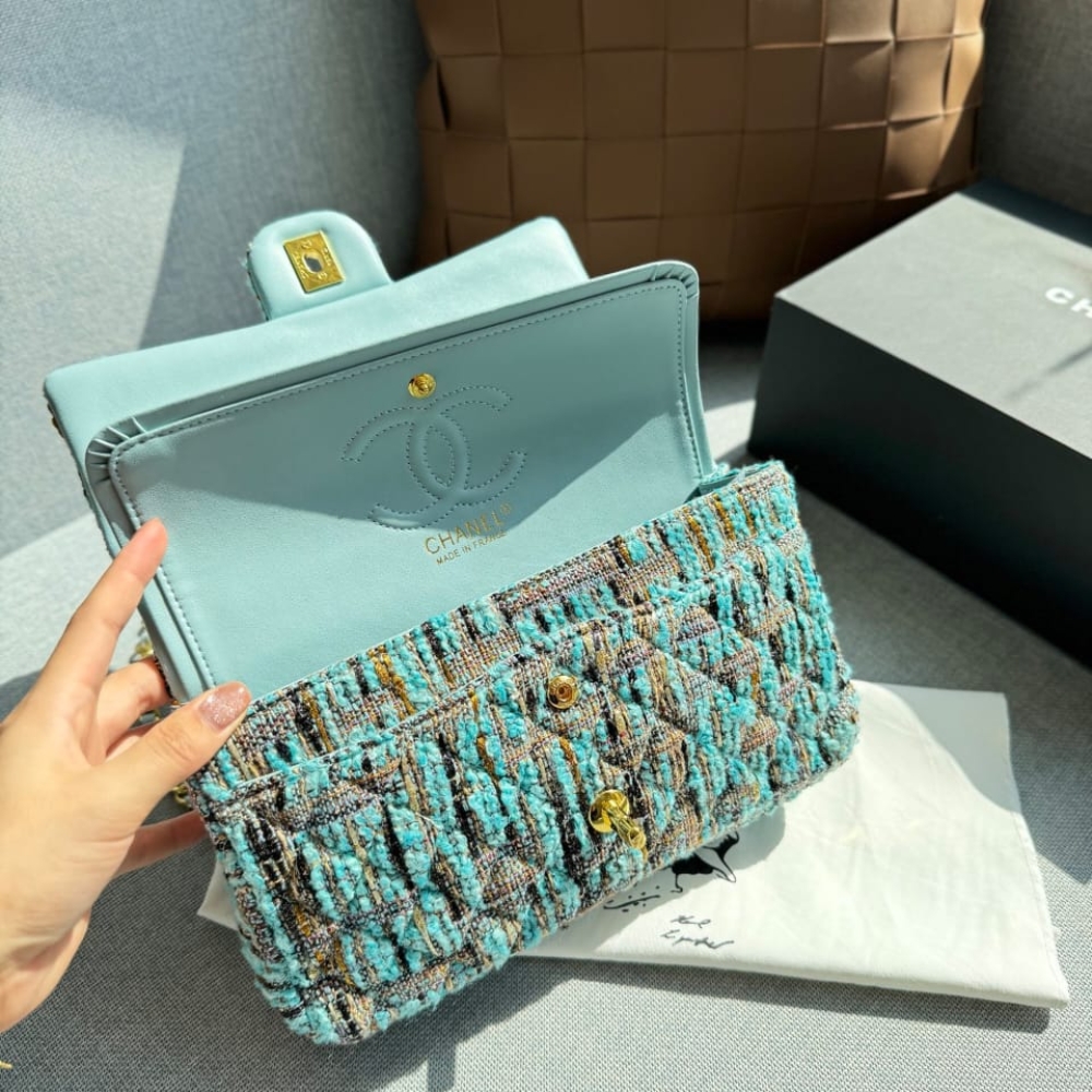 Replica 1:1 – Chanel Classic Double Flap Bag Tweed Multicolor Blue 26cm