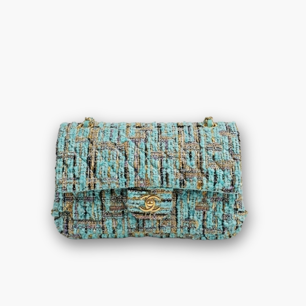 This Chanel Classic Double Flap Bag is beautifully crafted in vibrant multicolor blue tweed, offering a sophisticated and modern twist on the House’s most iconic silhouette. The rich texture of the tweed paired with signature gold-color hardware makes this a standout piece for any high-fashion collection, perfectly blending timeless elegance with contemporary flair.