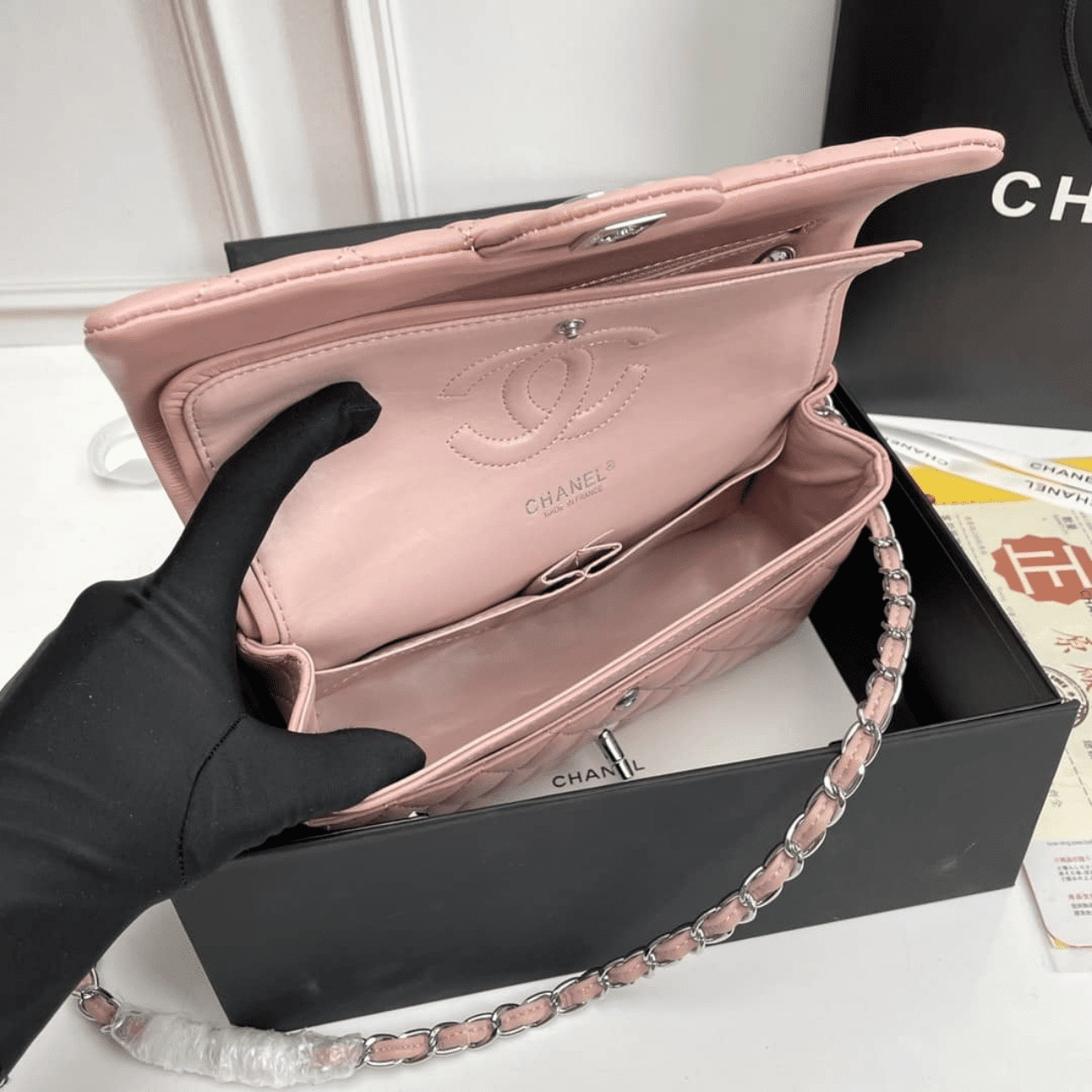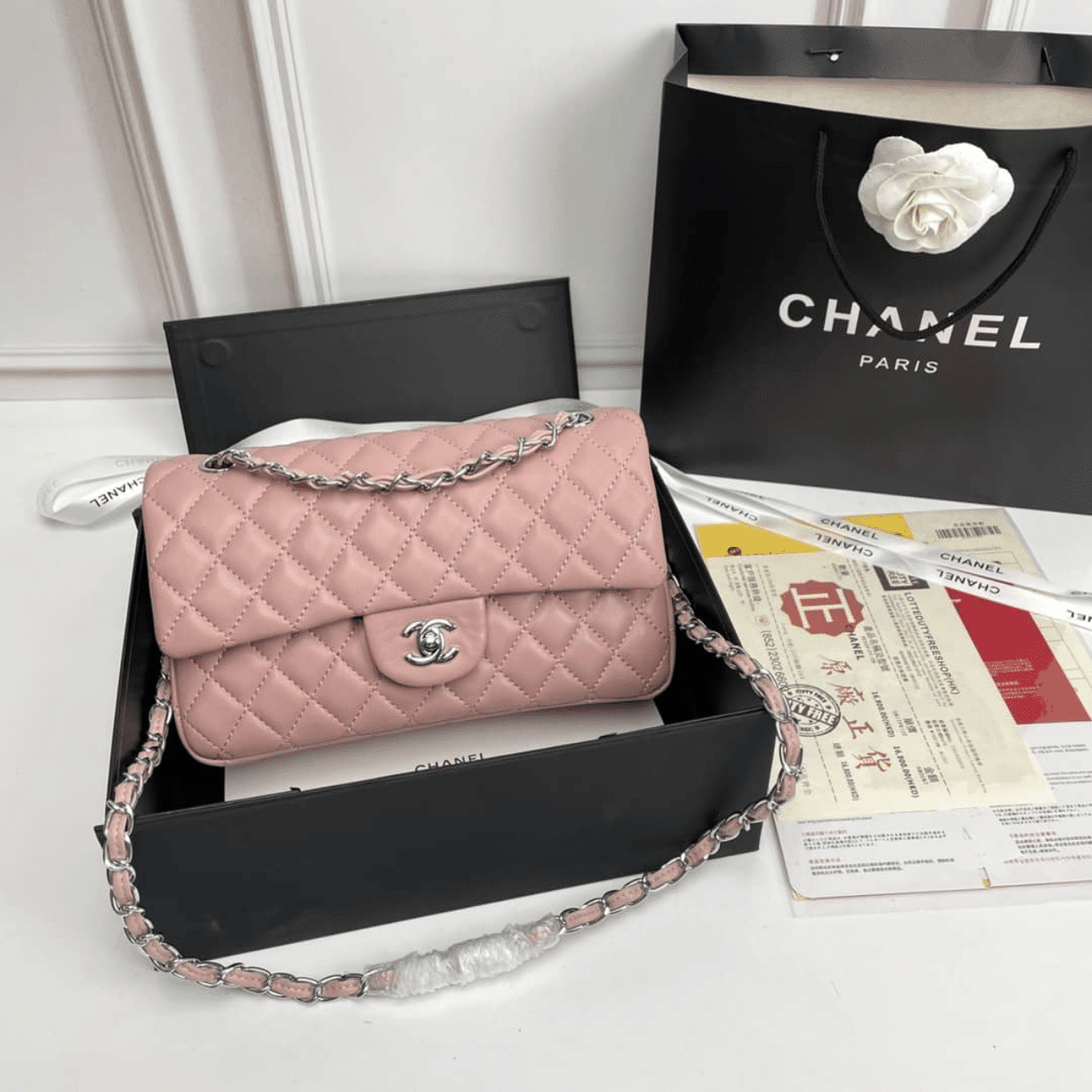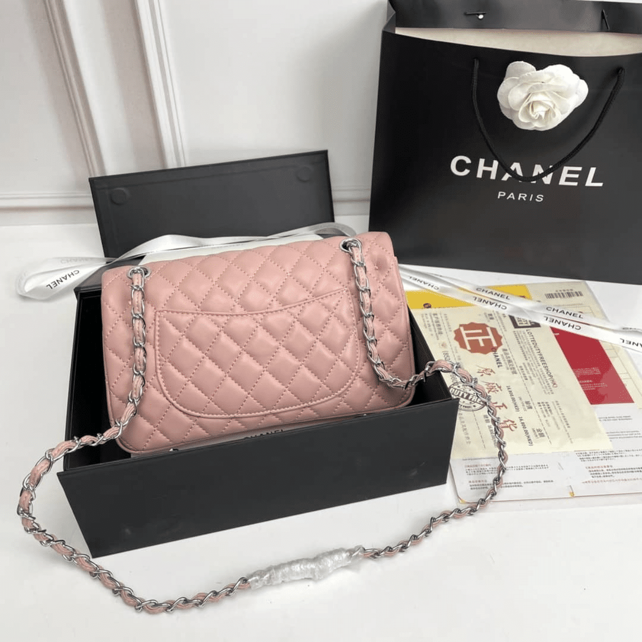 Replica 1:1 – Chanel Classic Double Flap Bag Silver Hardware Light Pink 25cm