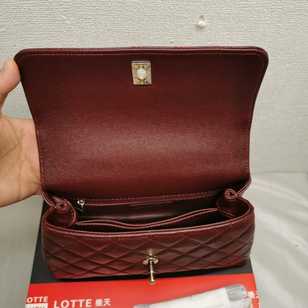 Replica 1:1 – Chanel Coco Top Handle Flap Bag Garnet Red 26cm