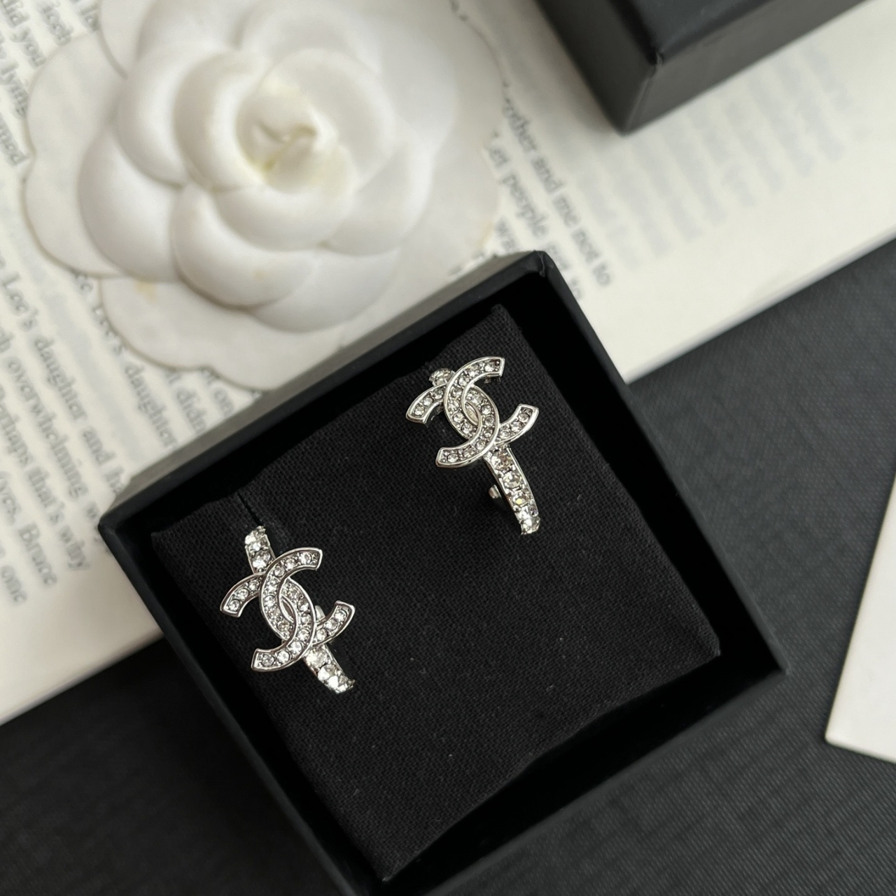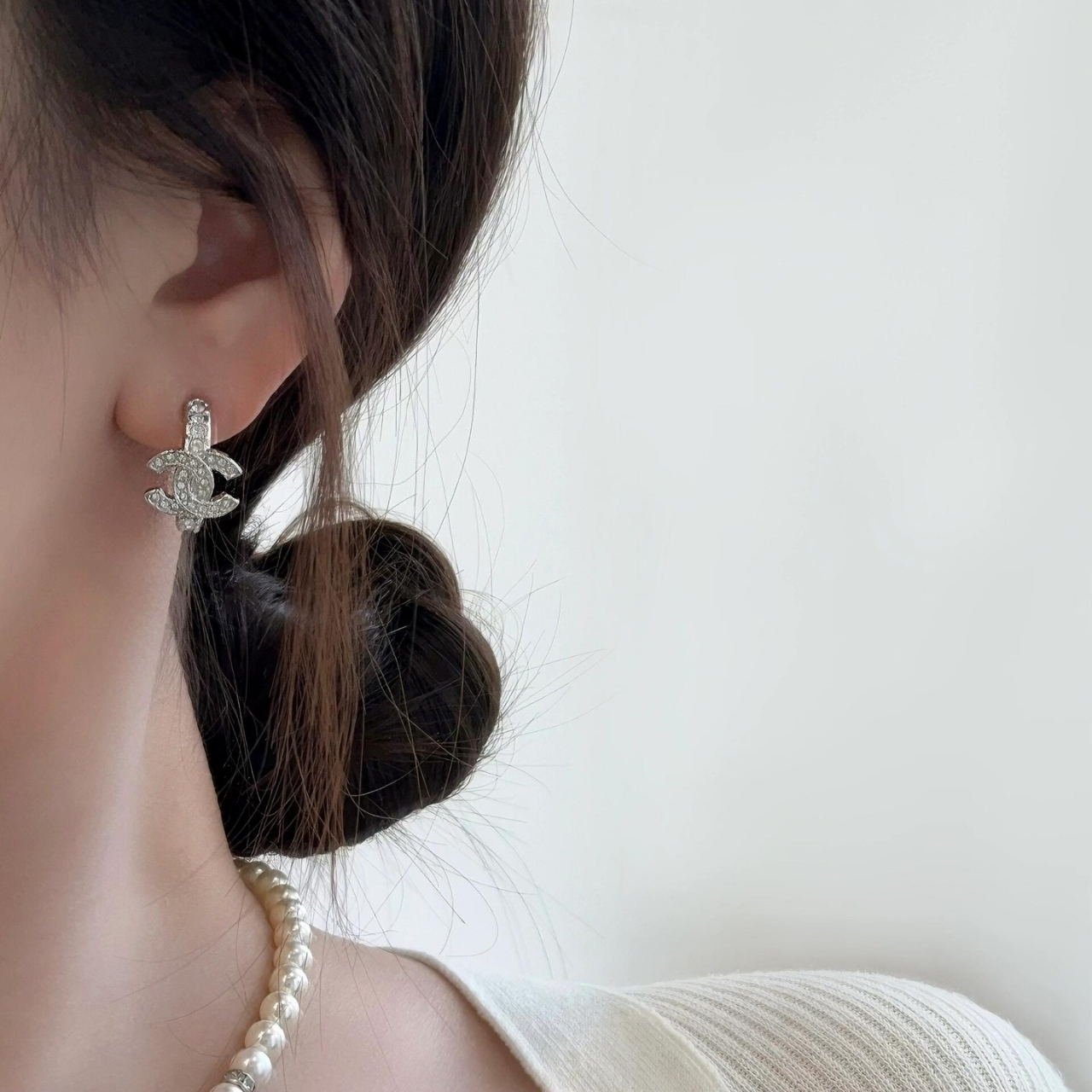 These Chanel crystal-embellished earrings radiate effortless sophistication and glamour. The signature interlocking CC design is adorned with dazzling white stones, creating a refined sparkle that catches every glance. Perfect for both everyday chic and elegant evening looks, they embody timeless Chanel luxury.