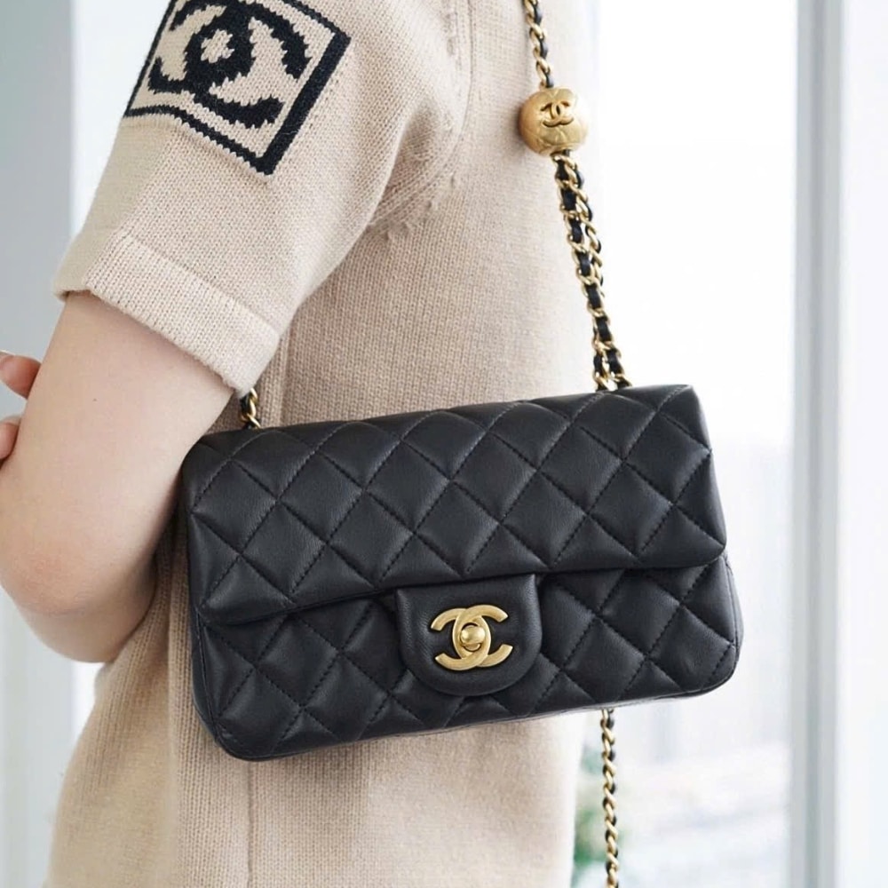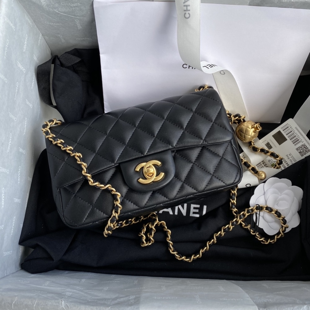 Replica 1:1 – Chanel Mini Classic Handbag Pearl Crush Black 20cm