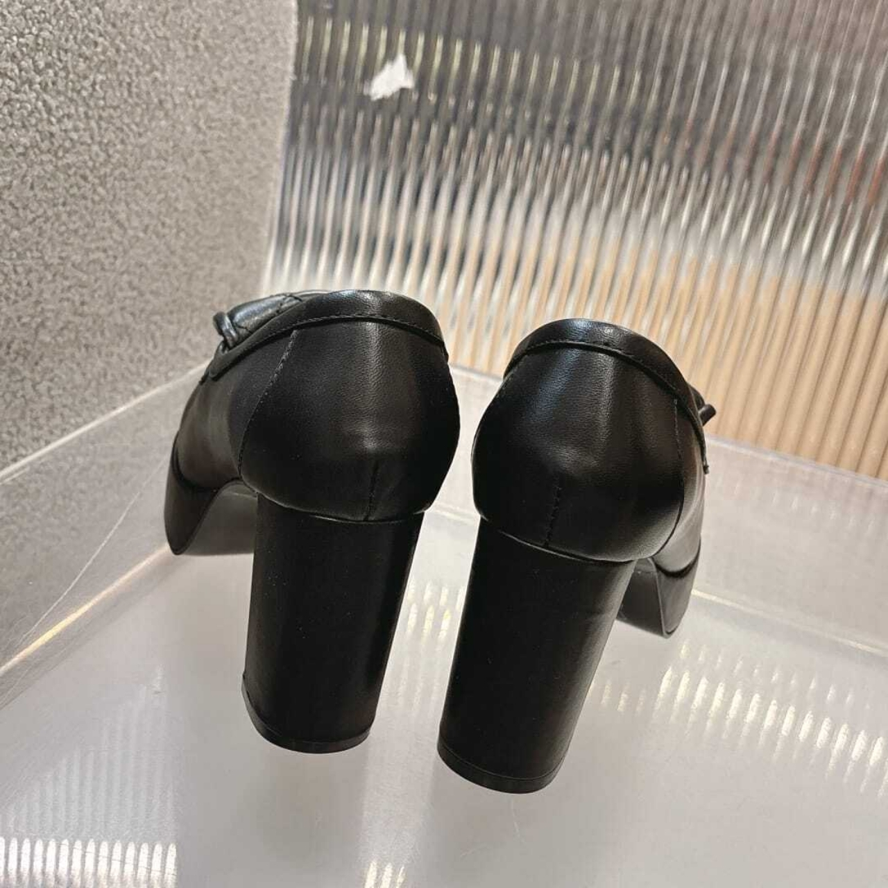 The Chanel Moccasins in Black redefine classic elegance with a bold, elevated touch. These moccasins combine timeless design with contemporary flair. Their structured silhouette and high heel make them a versatile statement piece for polished daywear or elevated evening ensembles.