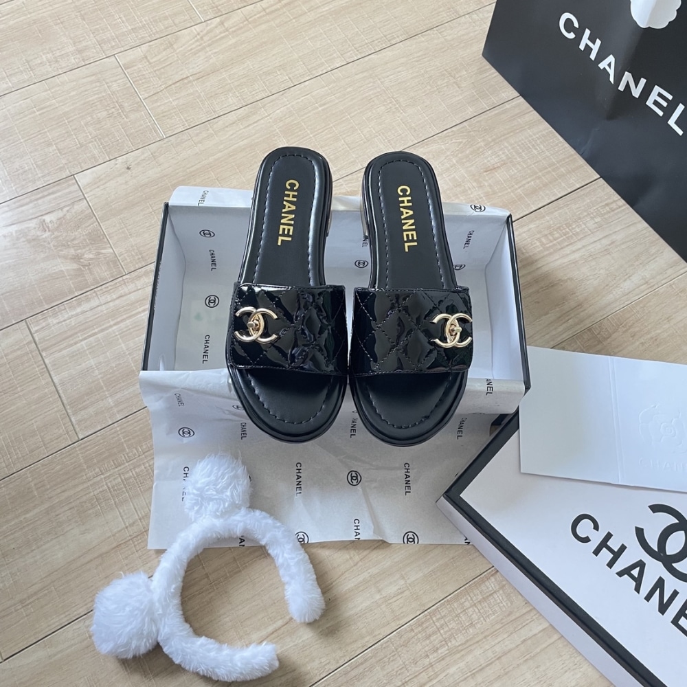 Replica 1:1 – Chanel Patent Quilted CC Slides Black