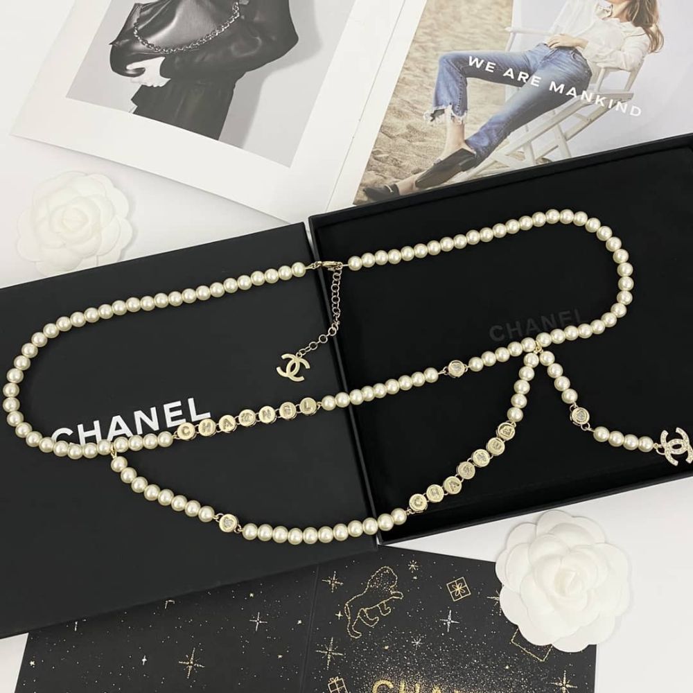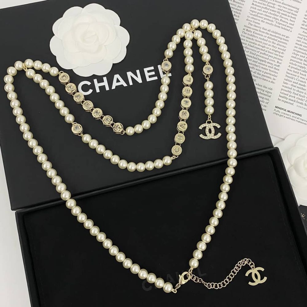 This elegant Chanel Pearl Necklace combines lustrous pearls with gold medallions featuring the iconic “CC” logo. The design includes two signature gold “CC” charms, adding a luxurious touch to your look. A perfect accessory for those who appreciate classic sophistication and timeless style.