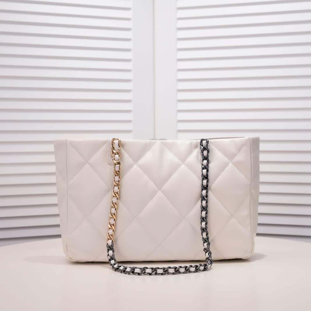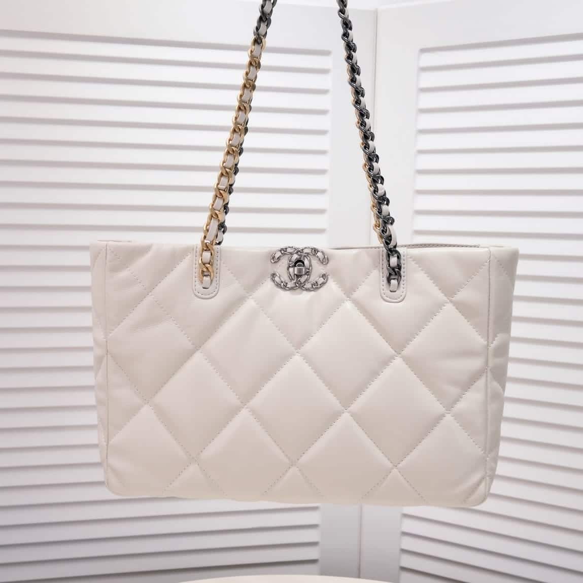 Replica 1:1 – Chanel Quilted 19 East West Shopping Bag White 41Cm