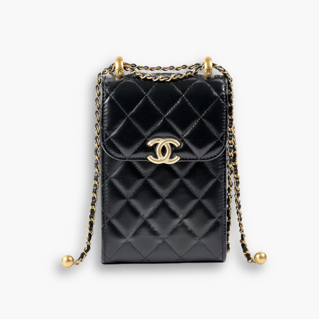 Chanel Trendy CC Phone Holder Crossbody Bags Black 17 cm – The Trendy CC Collection embodies refined elegance with contemporary functionality. This black quilted leather phone holder features the iconic interlocking CC logo in gold-tone hardware, a structured flap closure, and a sleek chain crossbody strap, offering a perfect blend of luxury and everyday convenience.