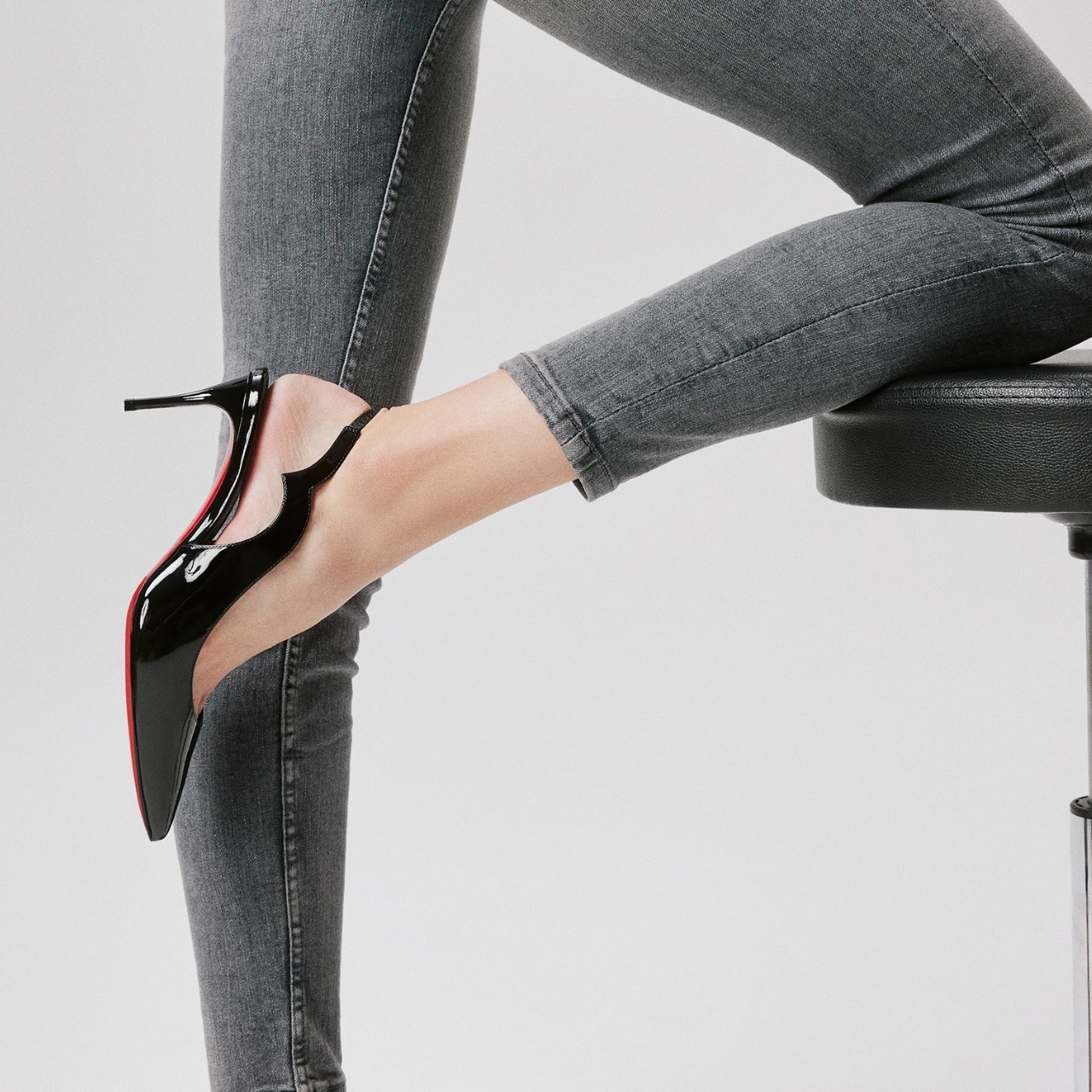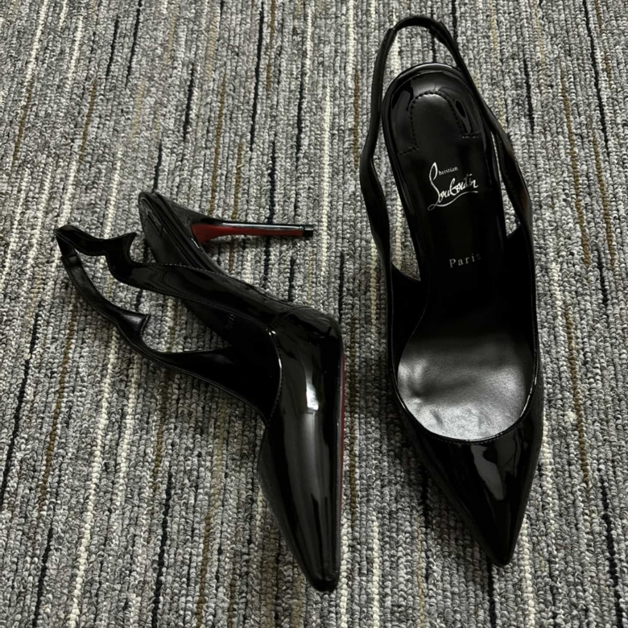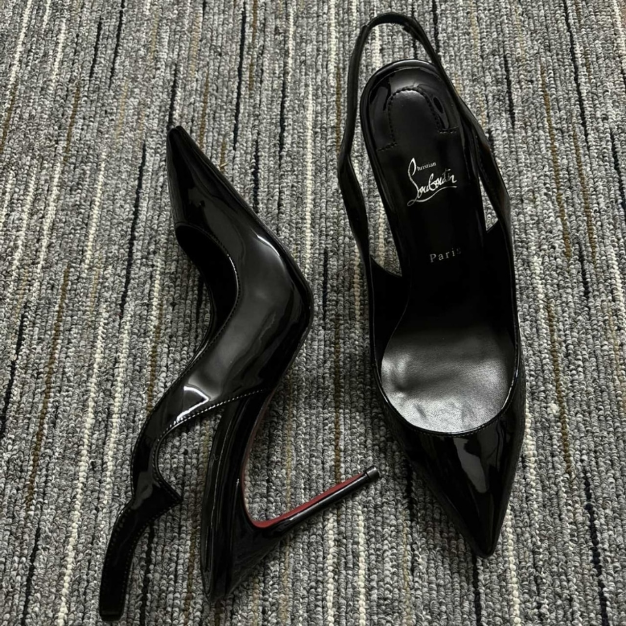– The signature red lacquered sole