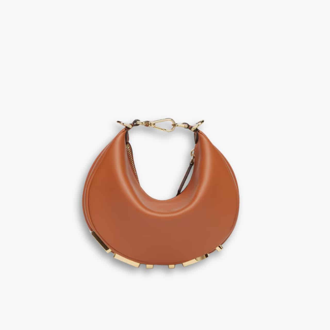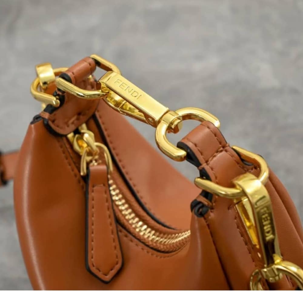 – Embellished with vintage gold metal FENDI lettering.
