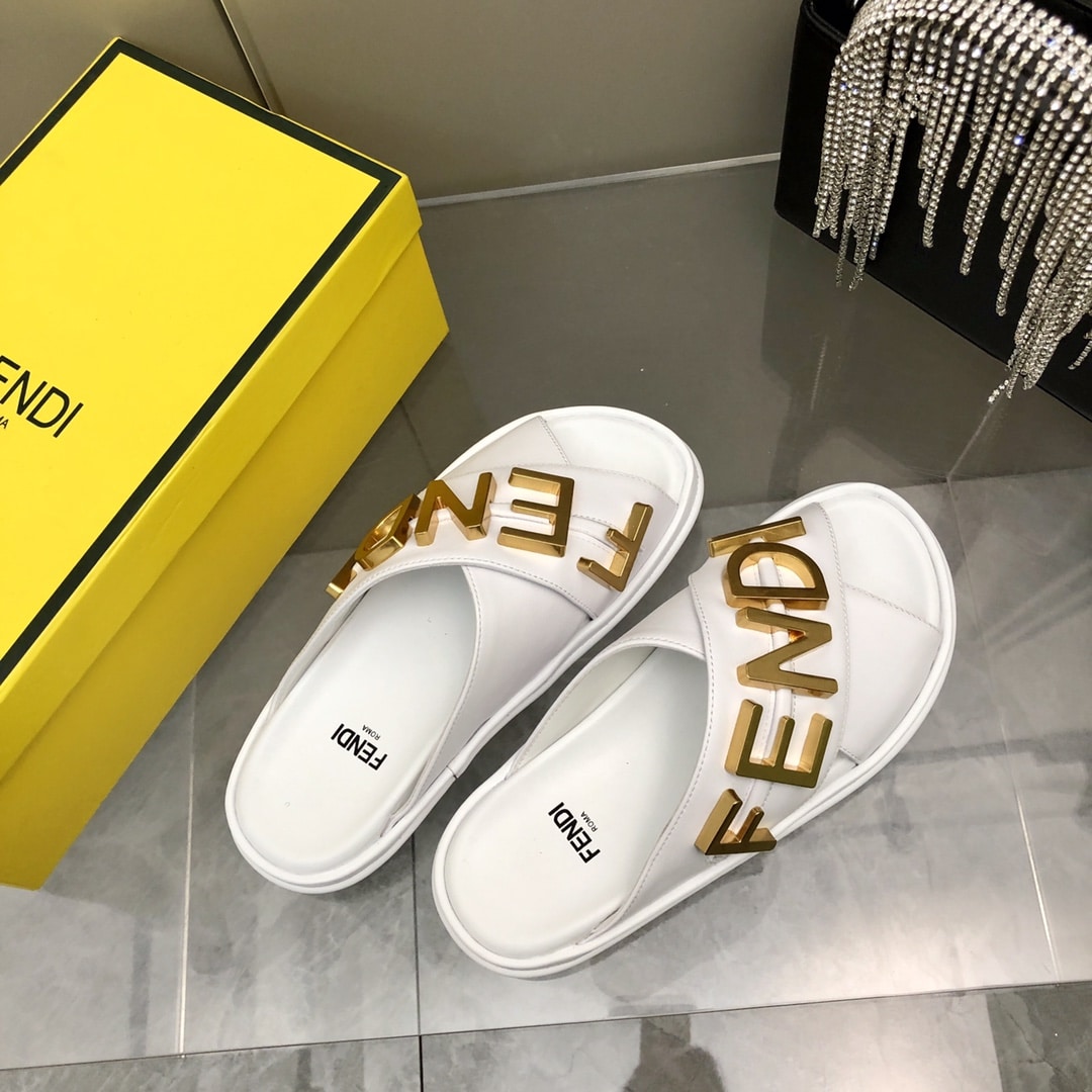 The Fendi Fendigraphy Slides White are a luxurious blend of simplicity and elegance. Crafted from premium black leather, the wide strap provides a snug and comfortable fit. The standout feature is the bold gold-tone “FENDI” logo adorning the side of the sole, adding a striking visual appeal. Designed with a lightweight and durable rubber sole, these slides offer both style and ease,
