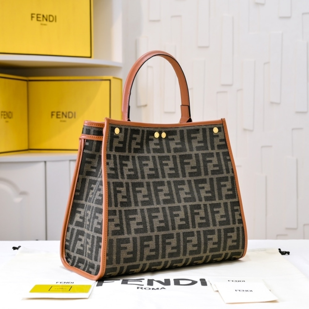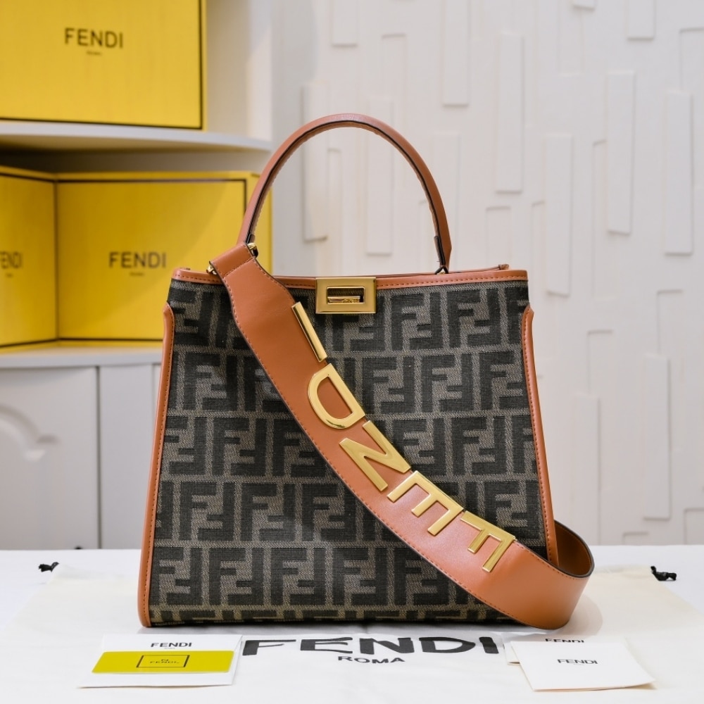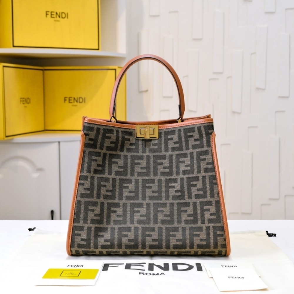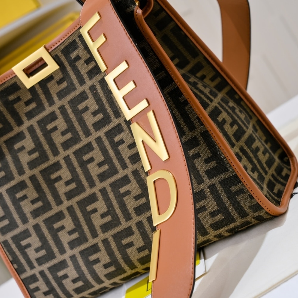 Replica 1:1 – Fendi Peekaboo FF Logo Handbag Brown 30Cm