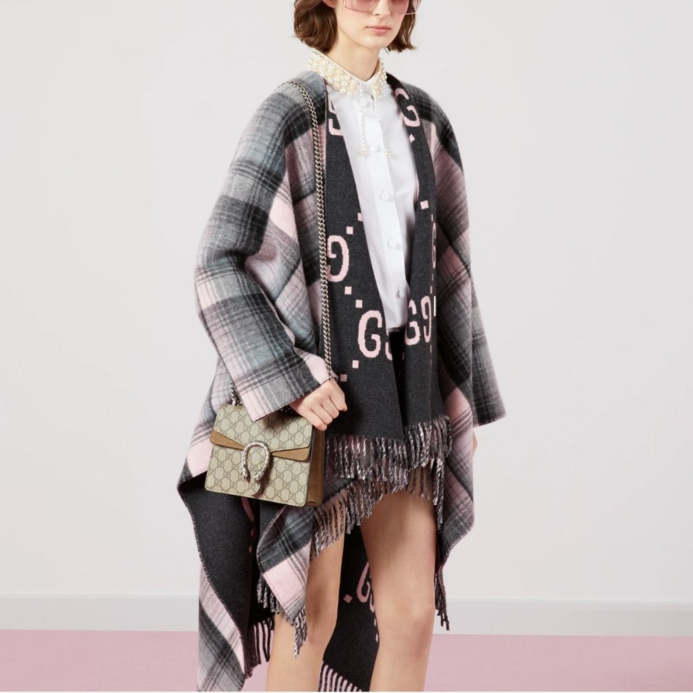 This is a Gucci Dionysus handbag in mini size. It comes in beige monogram with aged silver hardware. The closure is adorned with the line’s unique, unmistakable symbol: the textured tiger’s head spur, which is a nod to the Greek god Dionysus, who, according to legend, crossed the Tigris River on a tiger sent by Zeus.