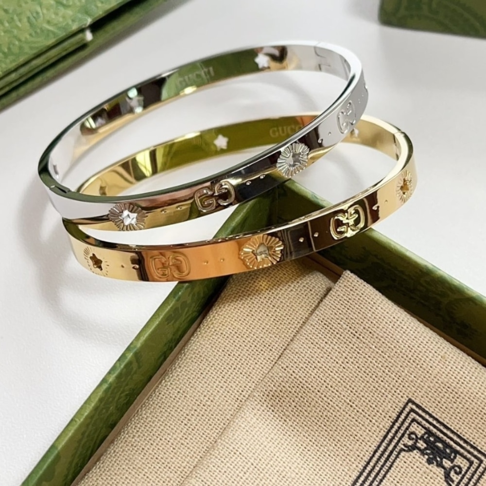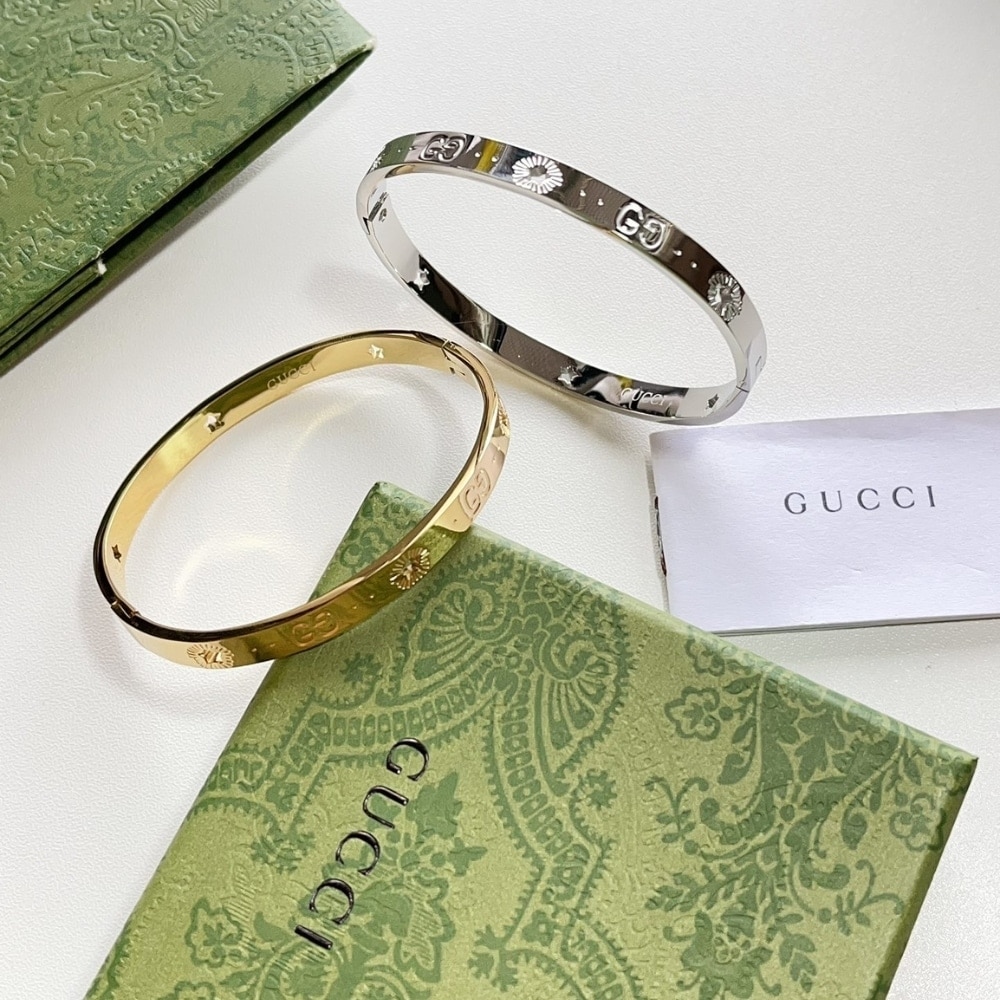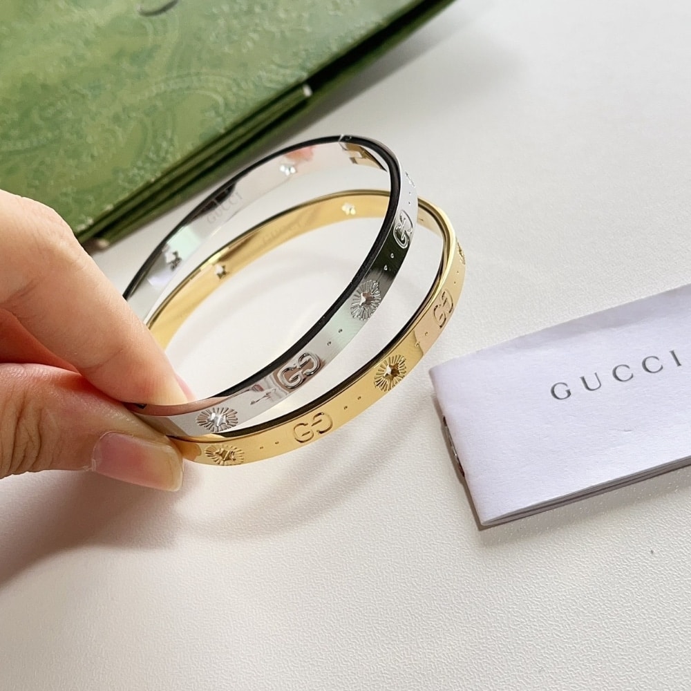 A luxurious and sleek bracelet featuring the iconic GG logo emblem. With a 6mm width, it offers a refined yet bold look, making it a perfect accessory to elevate any outfit with a touch of Gucci’s signature style and elegance.