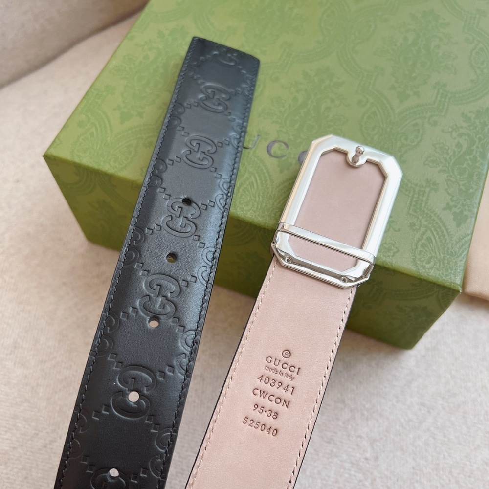 The Gucci Guccissima Signature Belt in black features the iconic embossed Guccissima leather paired with a sleek silver-toned buckle. Elegant and versatile, it’s a refined accessory for both formal and casual looks.