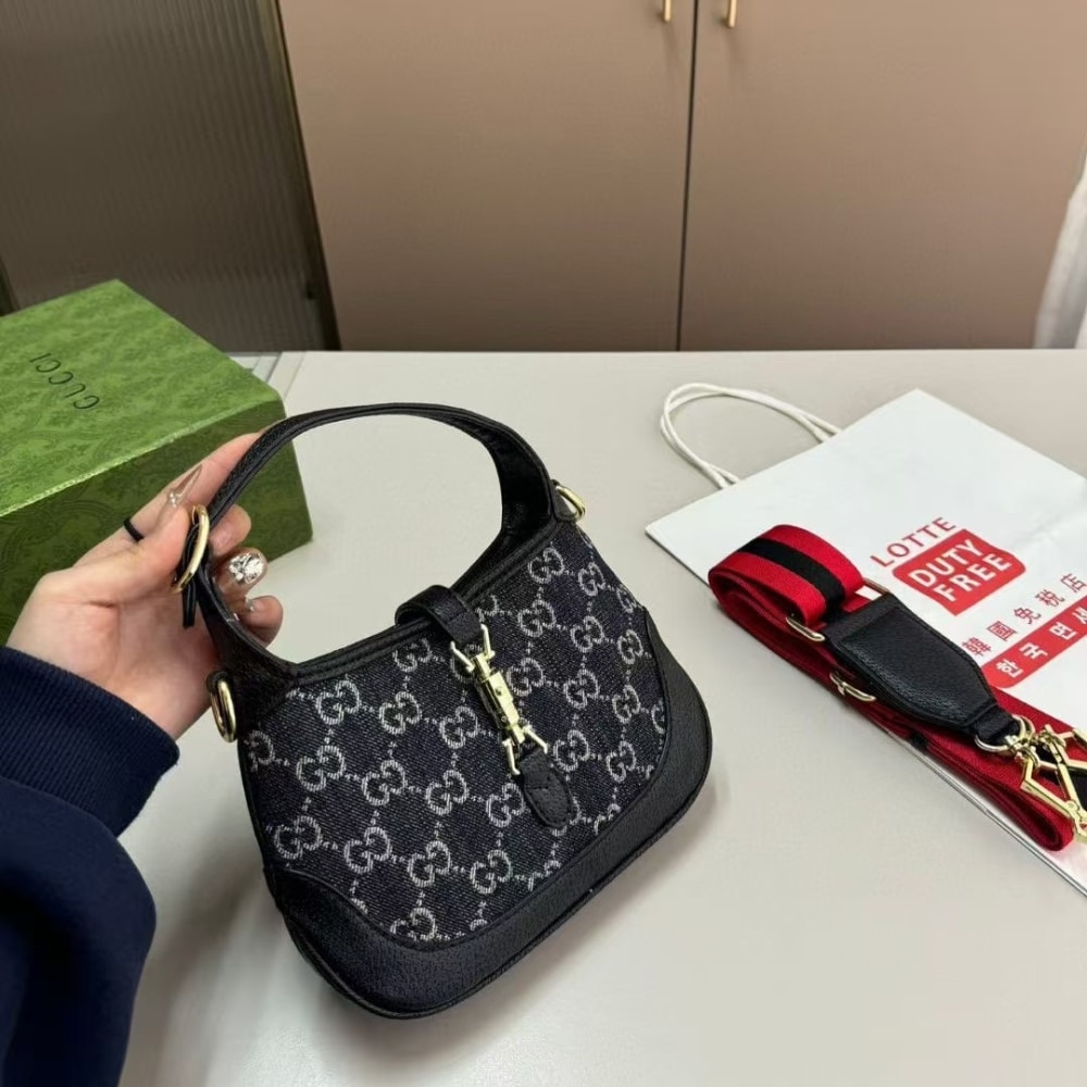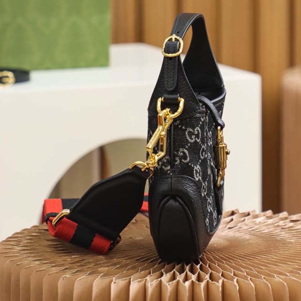 – Black and ivory GG denim jacquard