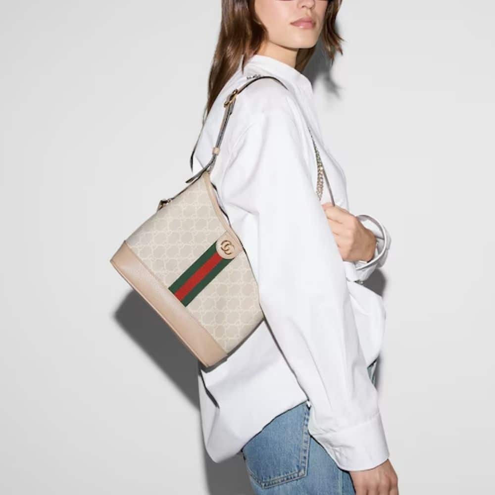 Replica 1:1 – Gucci Ophidia Small Shoulder Bag Beige 23cm 781402 UULAG 9682 The new GG Emblem collection reinterprets the House’s history of elegance and craftsmanship. This medium tote bag features numbered notches on the adjustable top handles, inspired by the equestrian world. Product Details: – Dimension: 23 cm / 9.06 inches – Beige – Beige leather trim – Light gold-toned hardware This item is crafted with the highest quality, offering a near-identical replica experience. Comes with a box and dust bag (for items over 35 cm, box availability may vary depending on size).