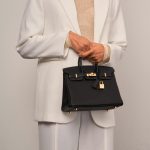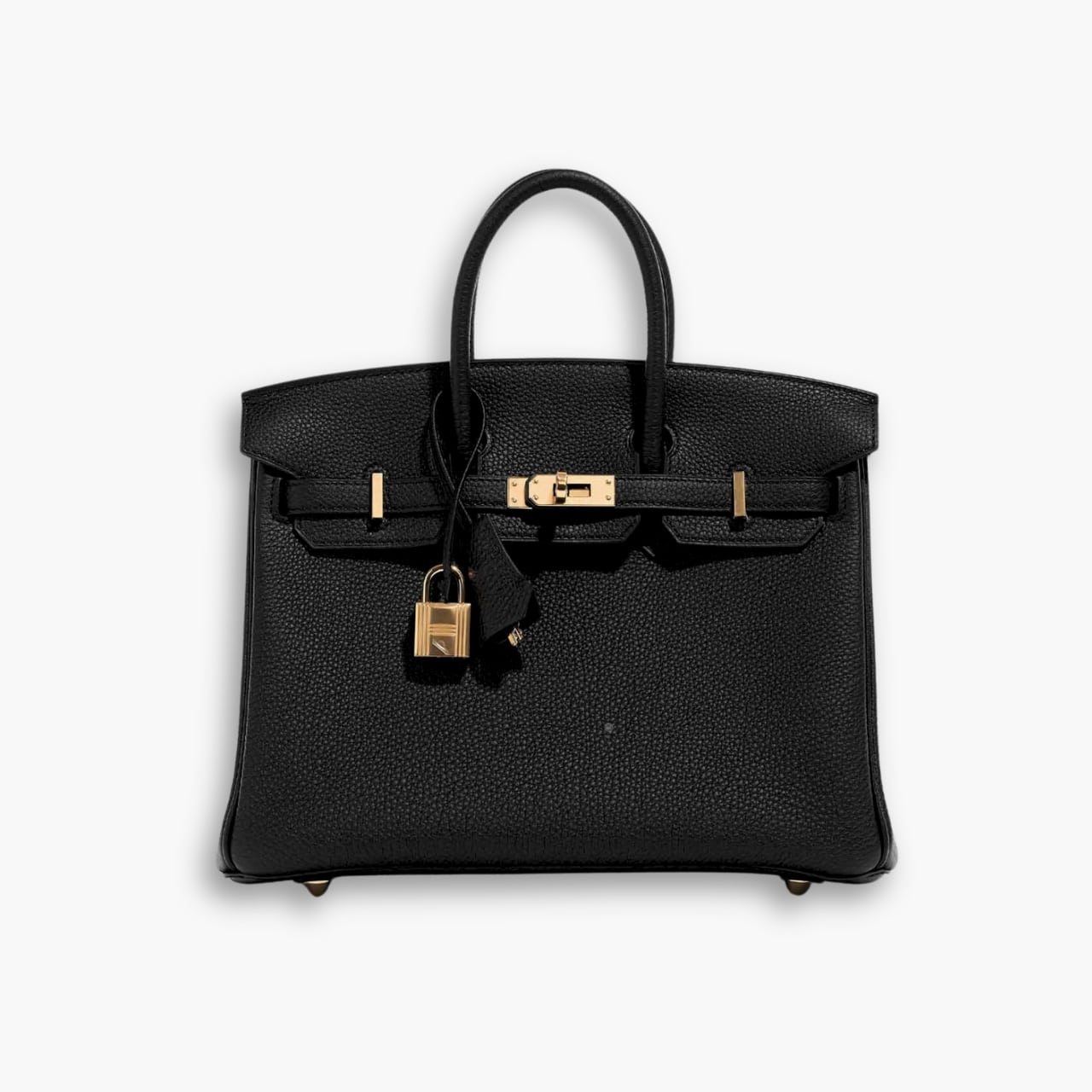 Hermes Birkin 25 Bag Togo Black with gold hardware combines elegance with a subtle, neutral tone. This compact yet iconic bag is perfect for daily use while maintaining its luxurious appeal. The stitching and gold accents add a refined touch to its timeless design.