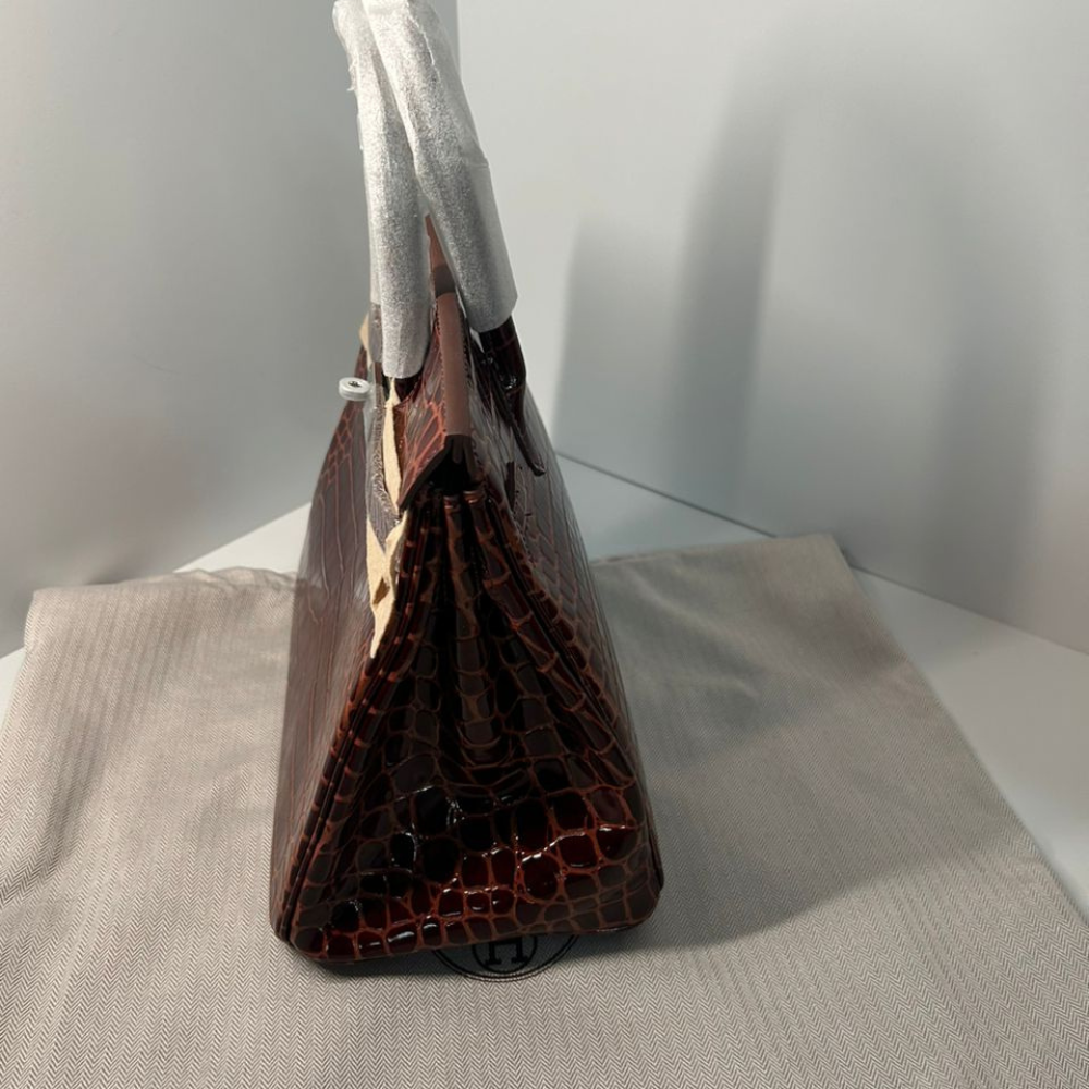 The Hermès Birkin 30 in Bordeaux features a luxurious shiny with silver hardware. Its 30 cm size offers a perfect balance between functionality and elegance. This iconic bag embodies craftsmanship and timeless sophistication, making it an exceptional statement piece for any collection.