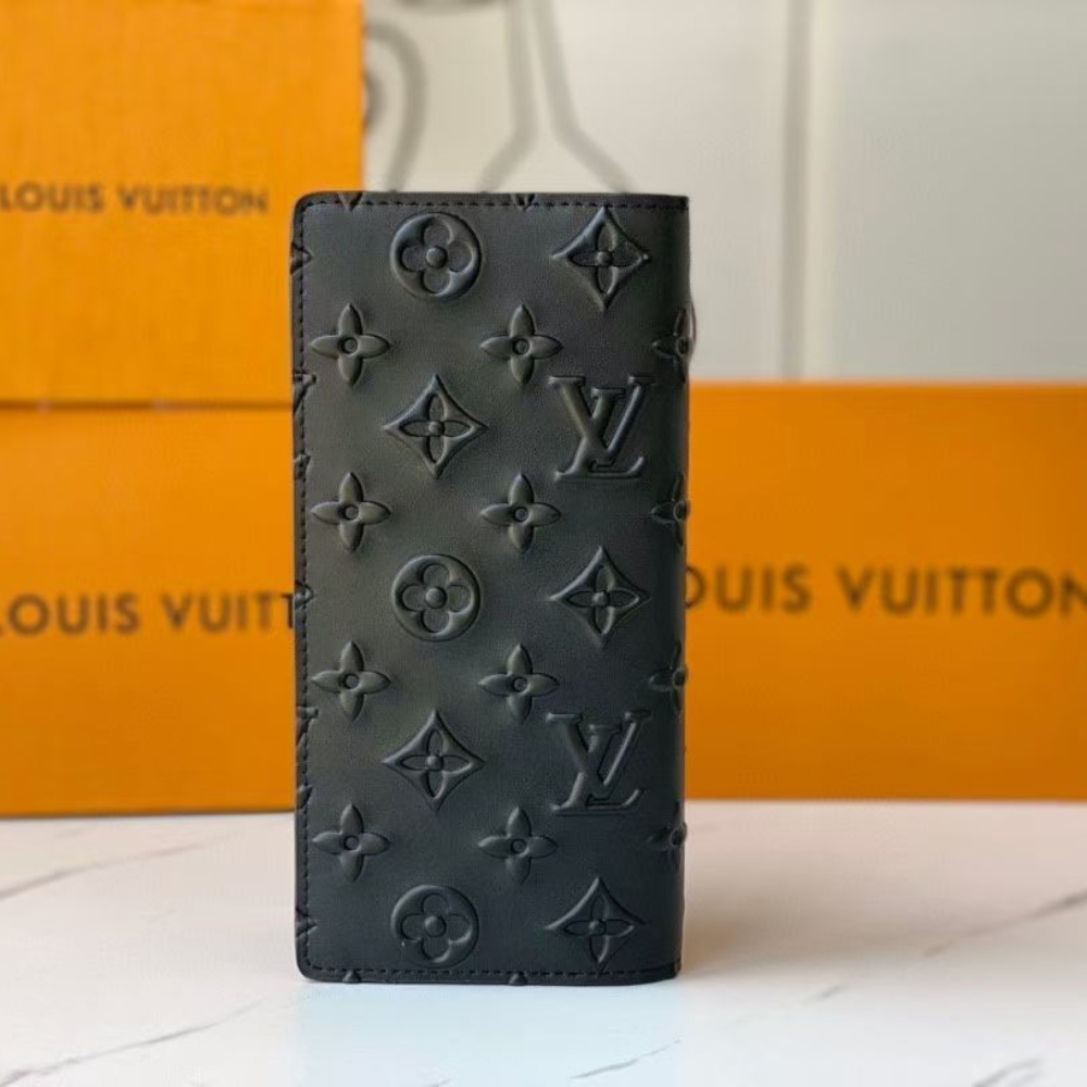 The Louis Vuitton Brazza Wallet in Black is a sleek and highly functional long wallet designed for those who appreciate refined organization and a slim profile. This model is crafted from premium Monogram Shadow leather, a very supple leather embossed with the iconic Monogram pattern for a subtle, masculine aesthetic.