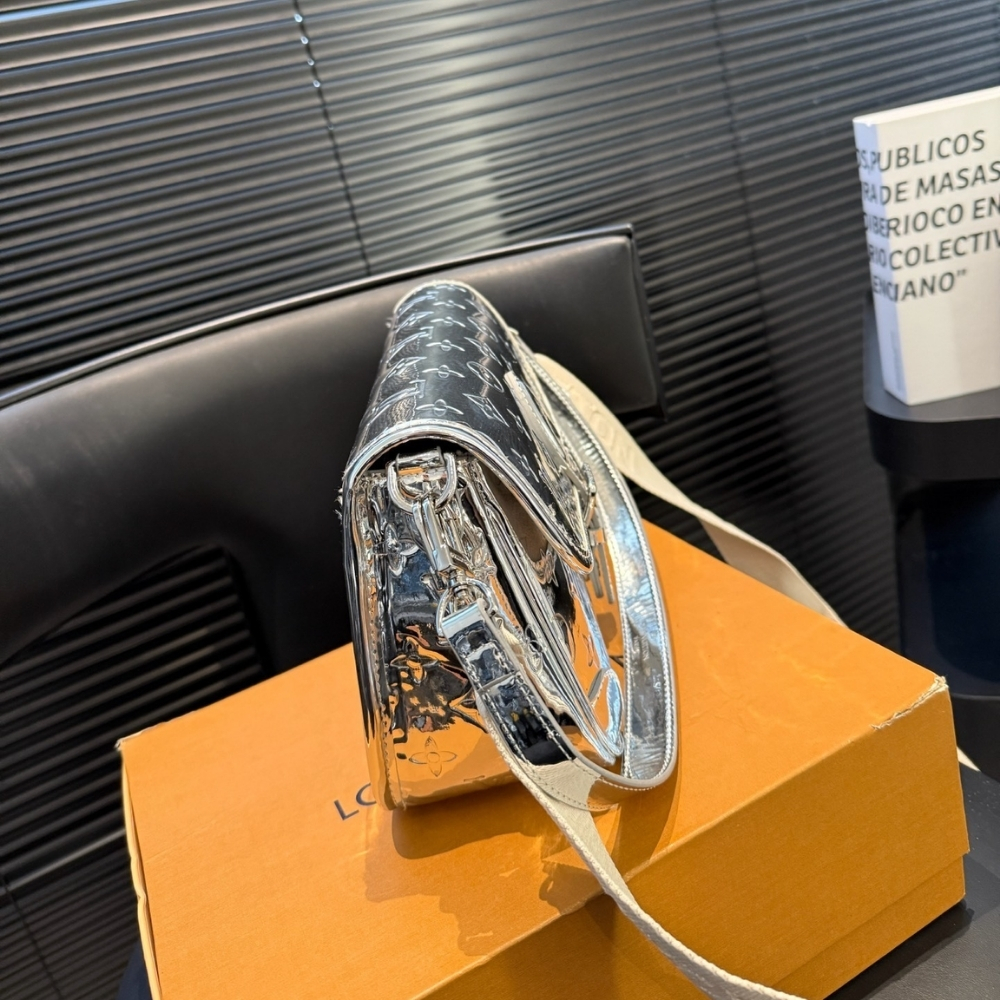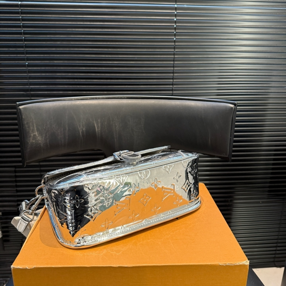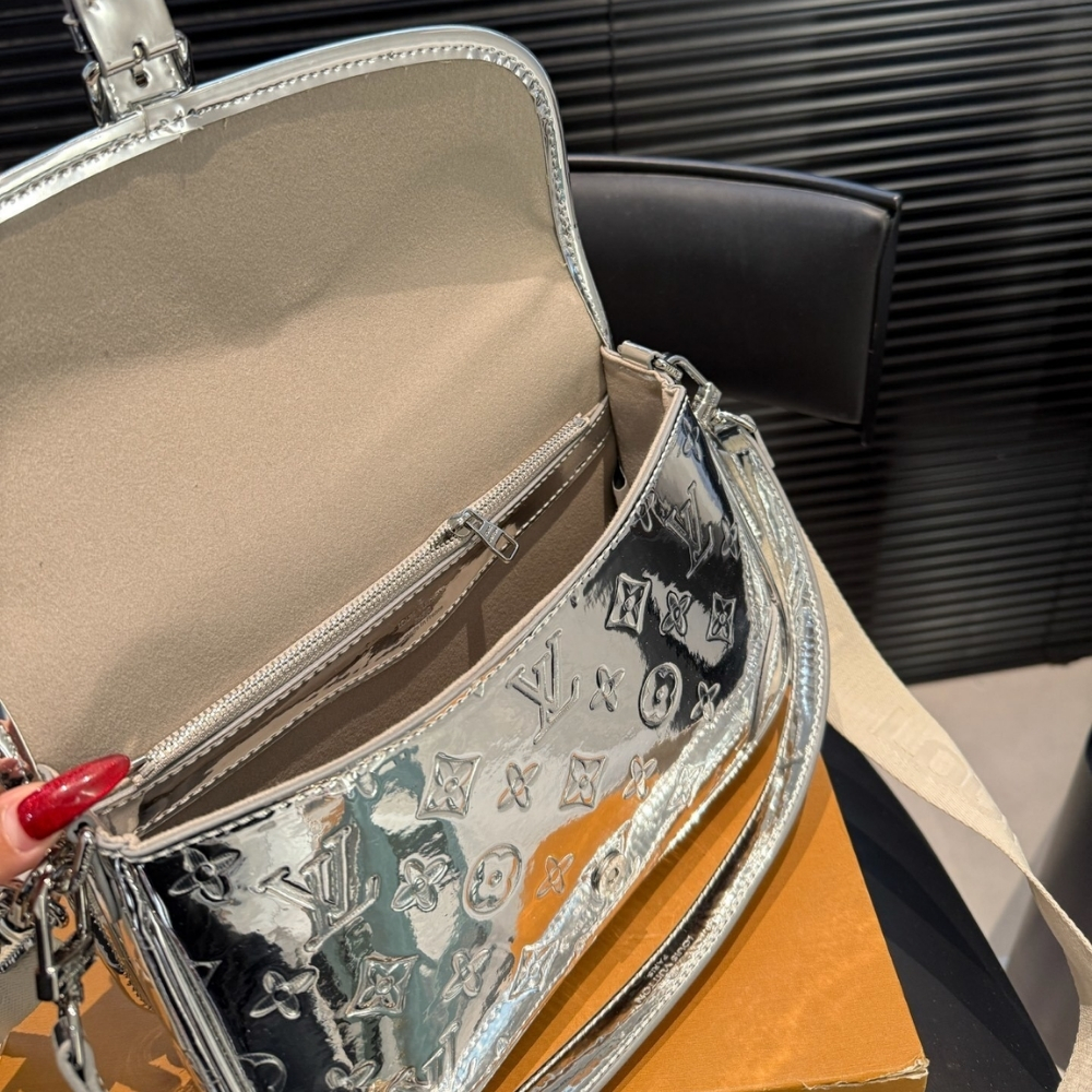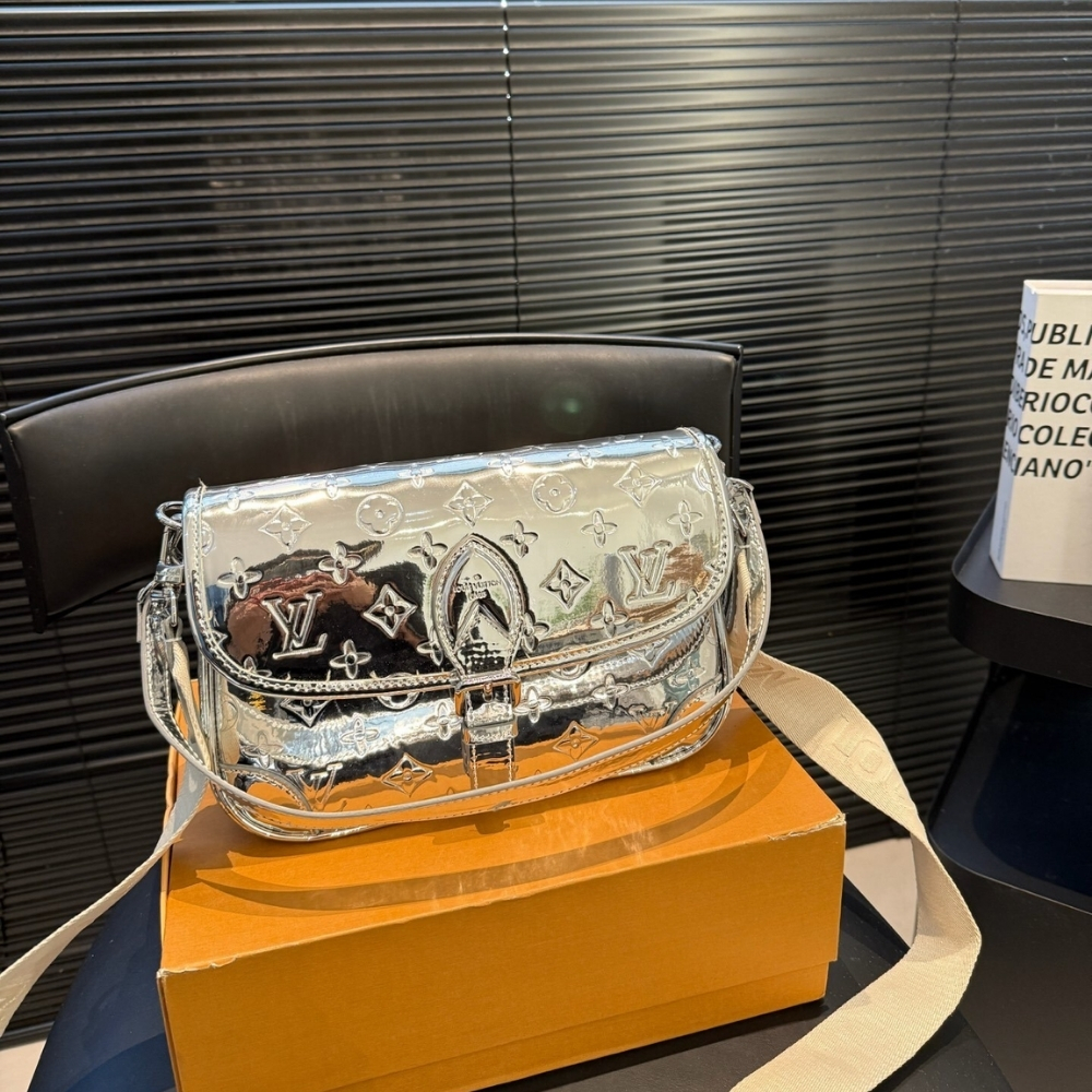 Louis Vuitton Diane Bag Monogram Miroir Silver features a classic, structured silhouette crafted from reflective Monogram Miroir material with a striking silver finish. Designed for everyday elegance, it offers a functional interior with a comfortable shoulder strap for versatile wear. A statement bag that combines timeless Louis Vuitton design with a bold, modern shine.