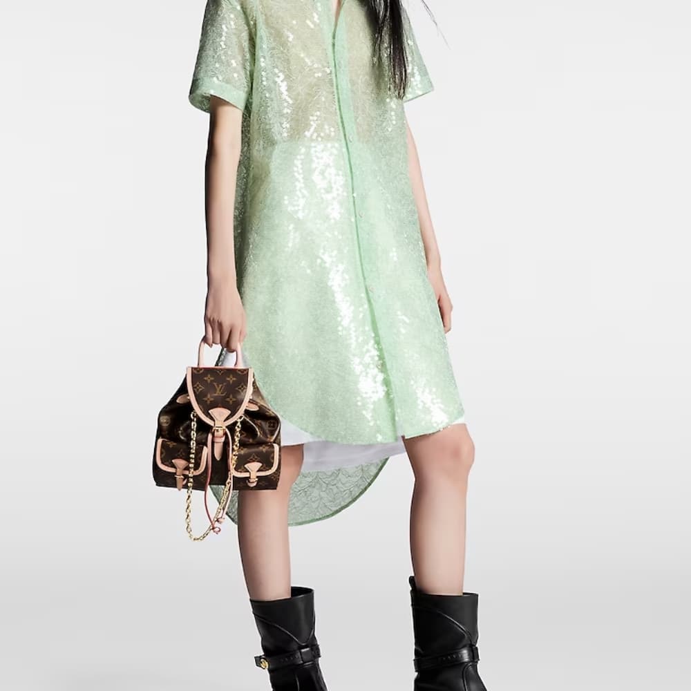 Made from Monogram canvas with leather trim, the super-cute, super-functional Excursion PM backpack has a design clearly influenced by the world of hiking. A gold-color chain, in addition to the top handle, enable different carries.