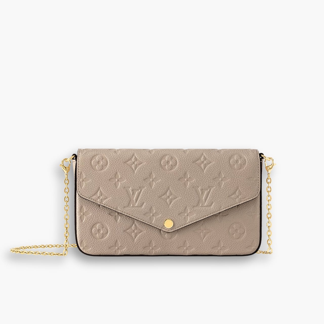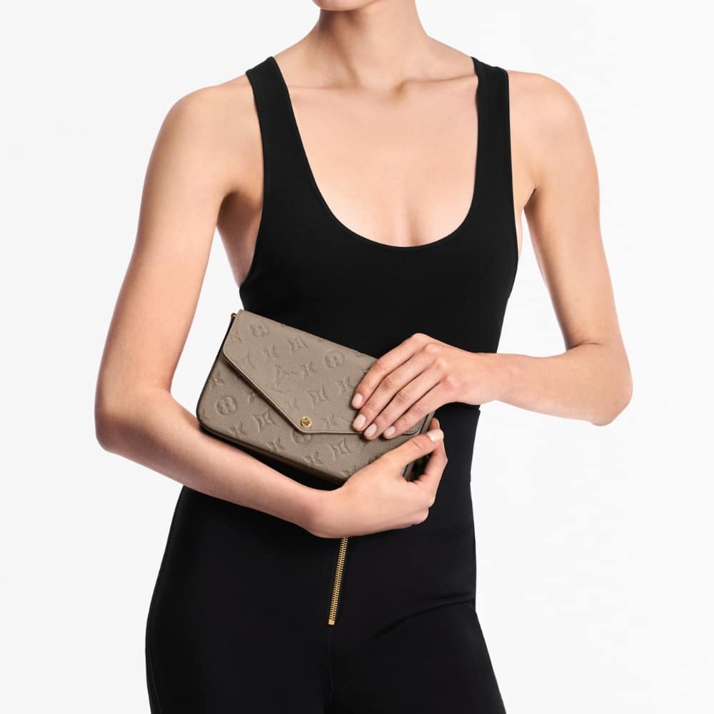 The Félicie Pochette is crafted from Monogram Empreinte leather embossed with Louis Vuitton’s iconic motif. With a modern envelope shape, the design is spacious with two separate compartments, one with a zipper and one with multiple card slots. The chain is removable for flexible carrying options.