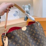 The Louis Vuitton Graceful Bag in Monogram canvas is a chic and practical accessory, designed with a curved silhouette for a relaxed yet stylish look. Its 35 cm size offers ample space while maintaining a lightweight feel. The classic brown Monogram pattern enhances its timeless appeal.