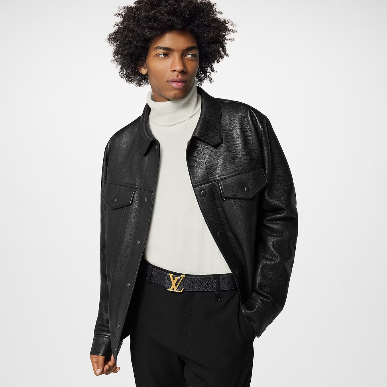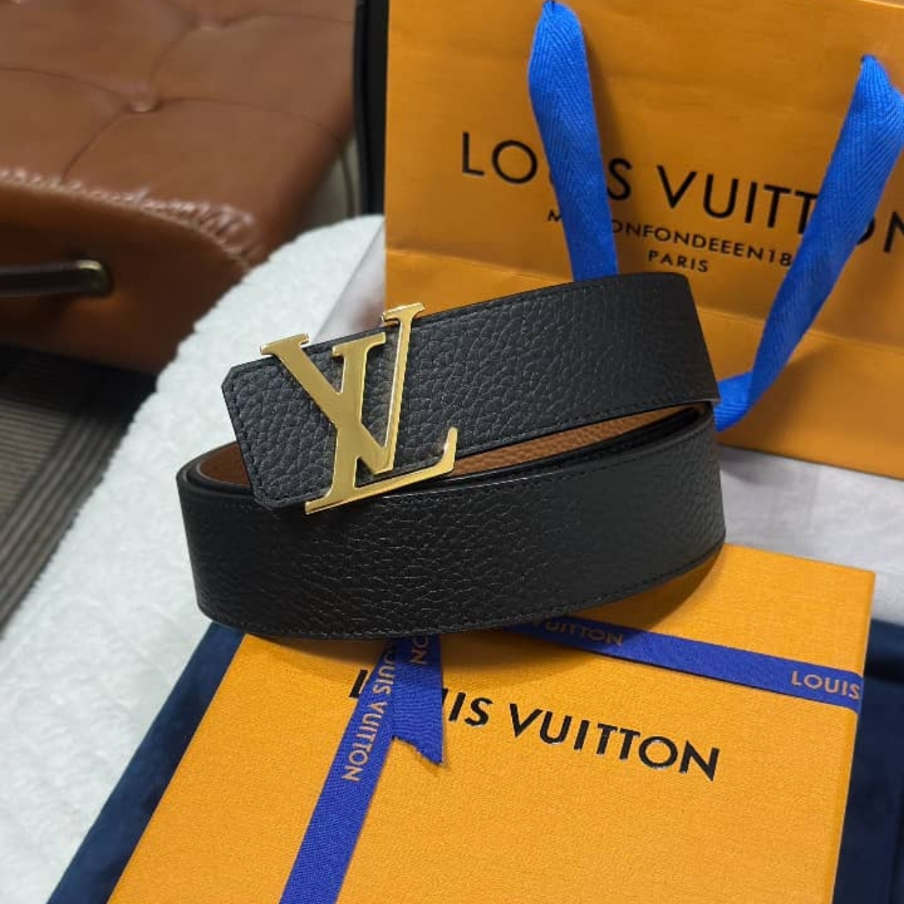 This belt is highly attractive for its unmistakable status symbol, featuring a timeless black leather strap contrasted by the oversized, polished gold-tone LV Initiales buckle that commands attention. The belt’s attraction lies in its versatile sophistication and the immediate, powerful recognition of the luxury brand through its iconic hardware.