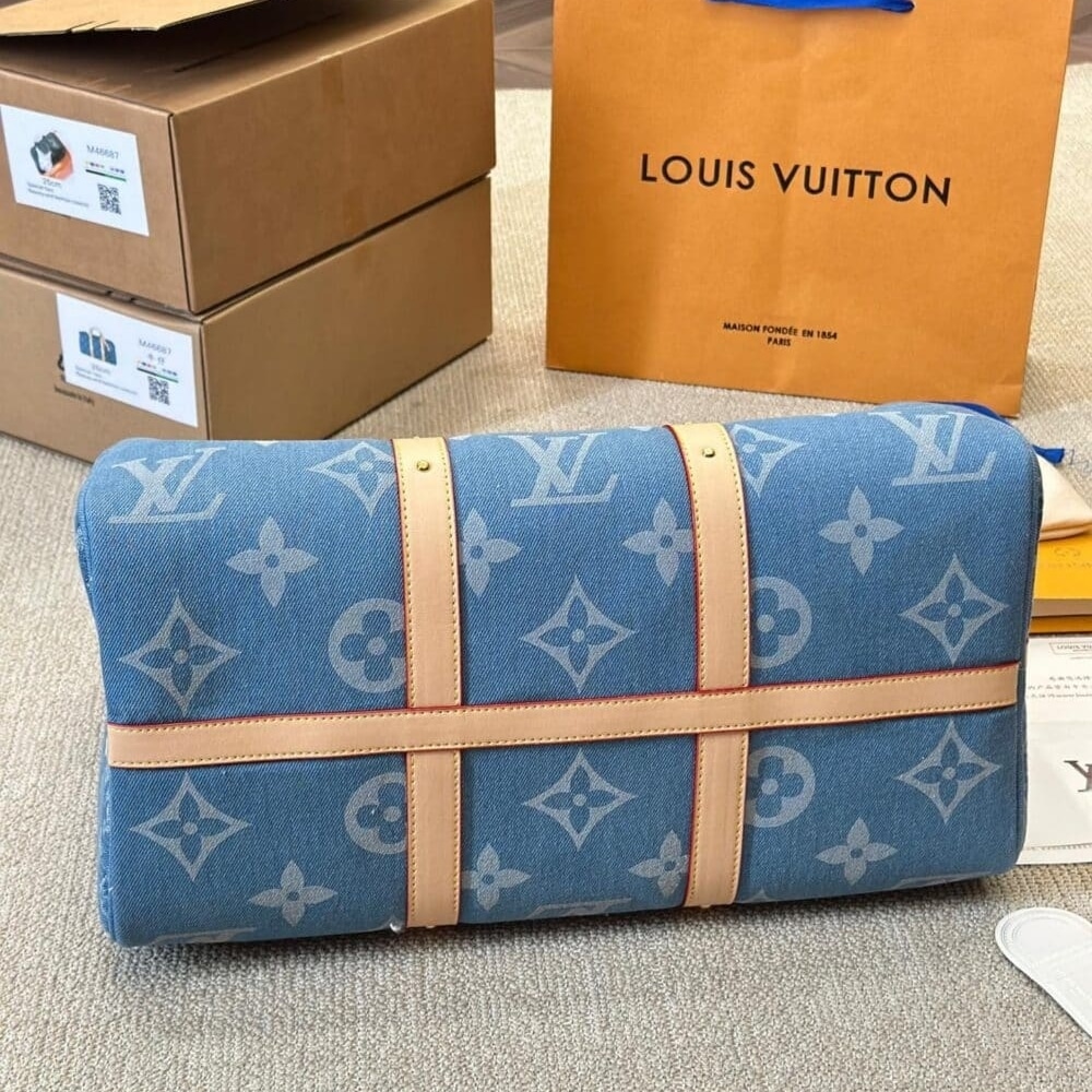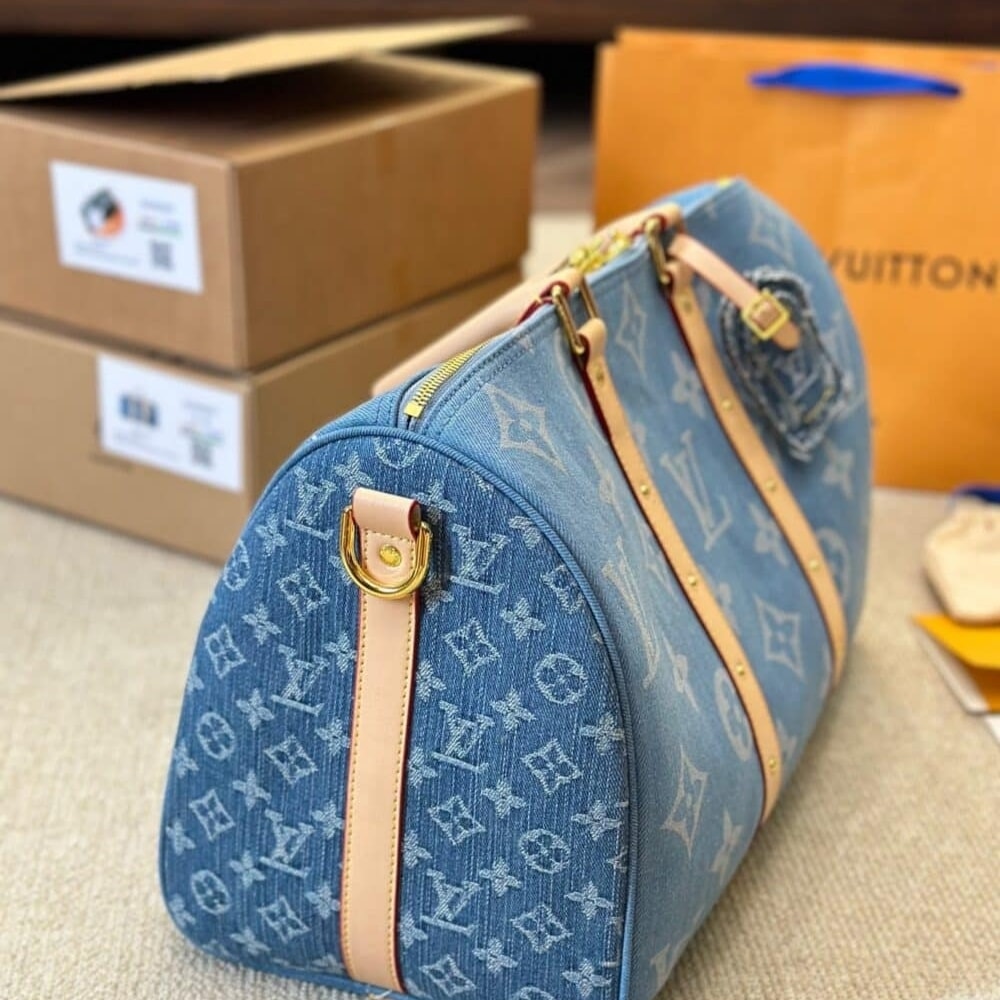 Replica 1:1 – Louis Vuitton Keepall Bandoulière Denim Blue 45Cm M24315